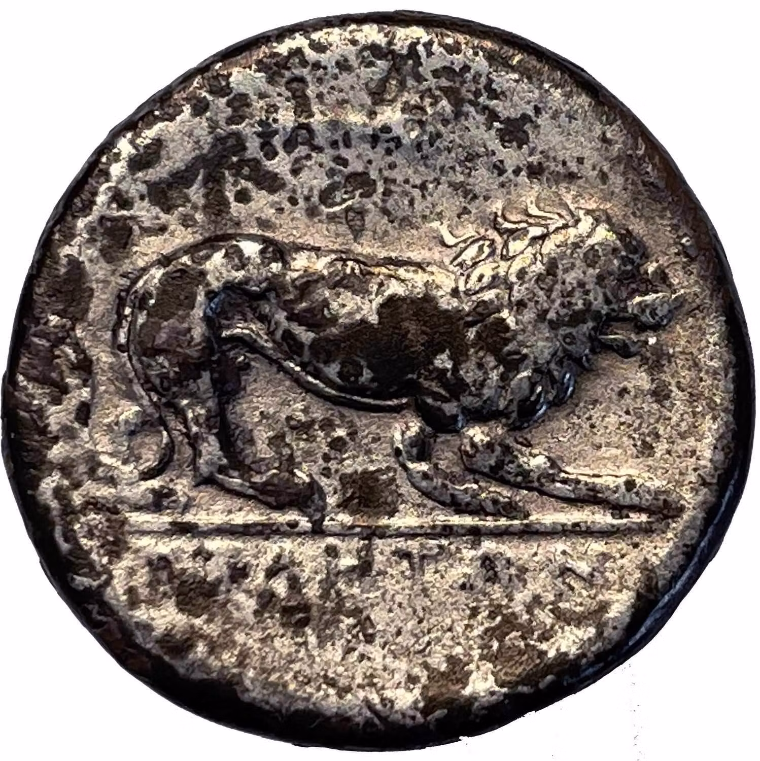 På åtsidan Athenas vänstervända hjälmprydda bild, kontramarkerad ΦA. På åtsidan ett gående vänstervänt lejon, i avskärningen ΥEΛHTΩN, ovanför Φ. Frånsidan med fläckvis fyndbeläggning annars kvalitet 1/1+, 7.20g, 21mm