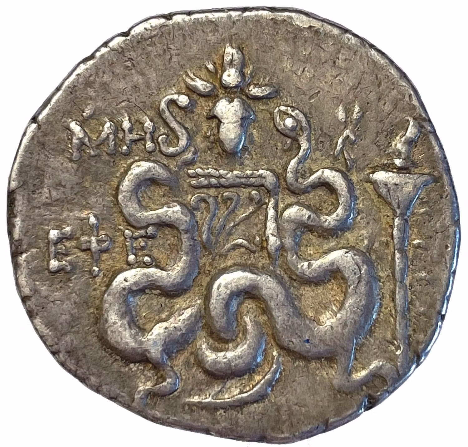 Ionien, Efesos, Tetradrachm ca 133-67 f.Kr Produkten är tyvärr slut i lager. :( Ionien, Efesos, Tetradrachm ca 133-67 f.KrKvalitet 1/1+, åtsidan något snedcentrerad, årtal M (=år 40, dvs 94 f.Kr)