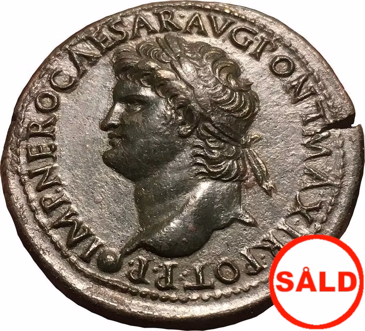Sestertie präglad ca 66 e.Kr i Lugdunum (Lyon). Ett av de absolut vackraste exemplaren vi hanterat, myntet har varit till försäljning vid flera tillfällen på storauktioner i USA och har bla varit på omslaget av Classical Numismatic Group XXI (26 June 1992), med en värdering på USD 5000. Ett mynt som tar andan ur betraktaren. Knivskarpa detaljer, i stort helt utan slitage, präglad i hög relief med "medaljlikande karaktär". Perfekt centrerad. Ett mynt för den verkligt kräsne samlaren. Sear 682. Kvalitet 01, MINT CONDITION. (såld)