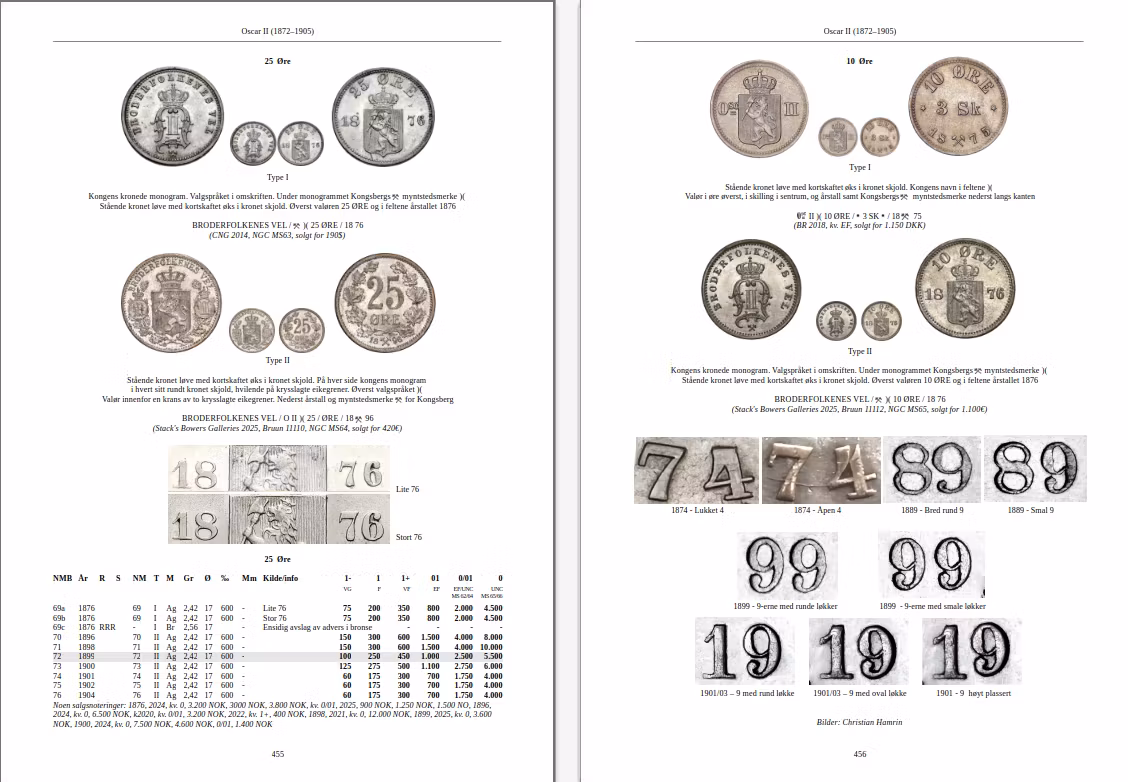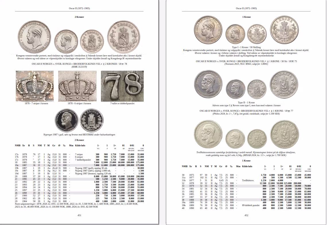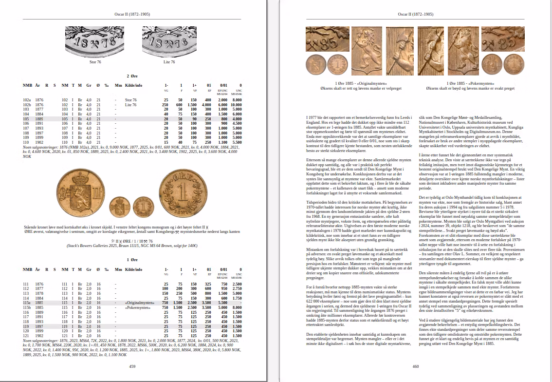Norges myntbok är ett omfattande arbete som spänner över mer än 1 000 år, där jag har granskat och uppdaterat forskningsfronten inom olika områden. Varje regent presenteras med en biografisk skildring där historiska och numismatiska fakta vävs samman, kompletterat med kommentarer kring priser och statistik.
