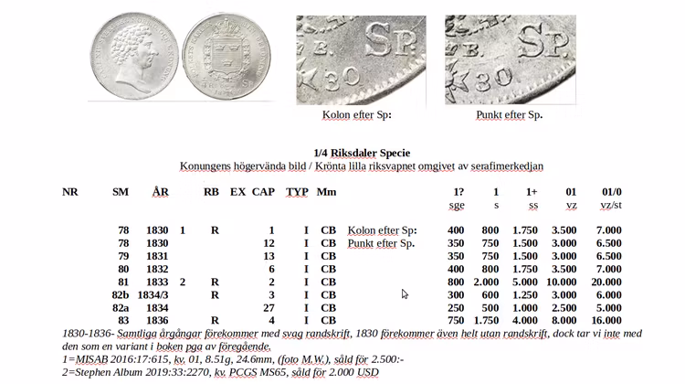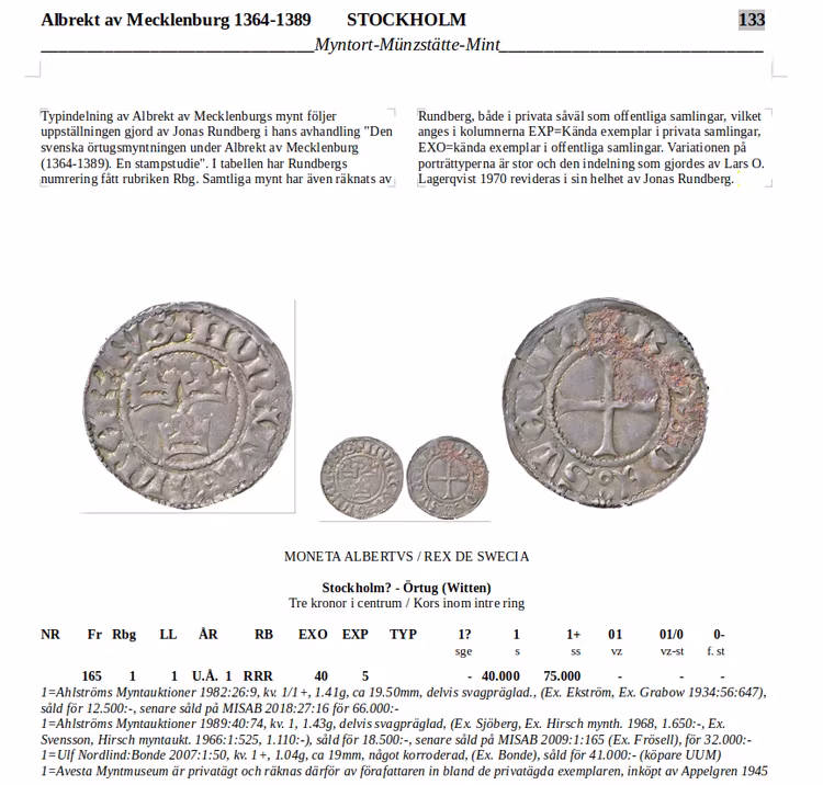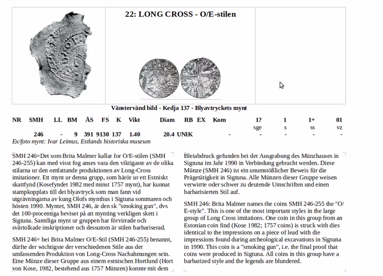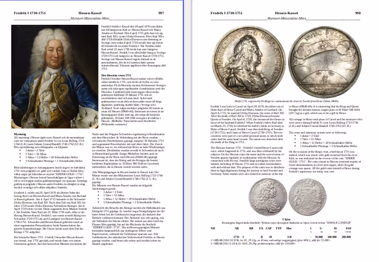 - Fördjupande artiklar kring utvalda mynt på Svenska, Tyska och Engelska