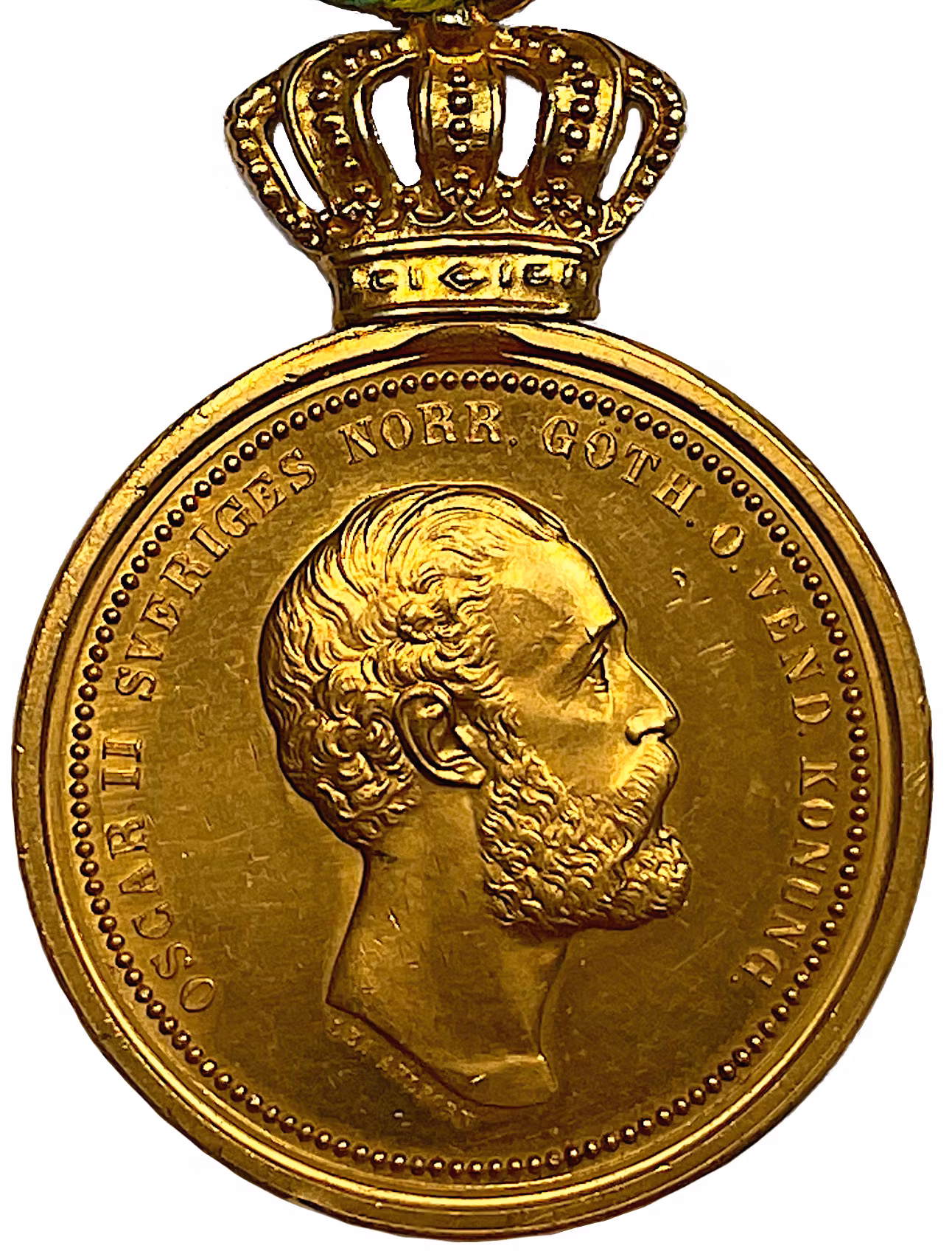 Oskar II - Guldmedalj med band och originalask - Kungliga Patriotiska Sällskapets belöningsmedalj - Mycket sällsynt helobjekt av Lea Ahlborn
