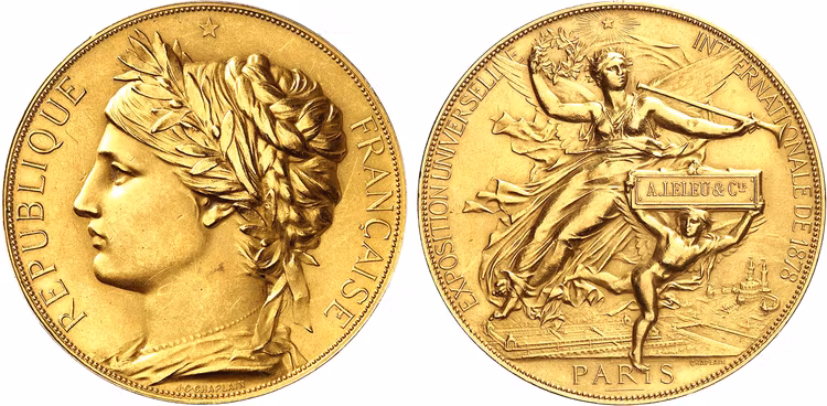 Franska republiken - Världsutställningen i Paris 1878 - RR - Stor guldmedalj i vacker kvalitet