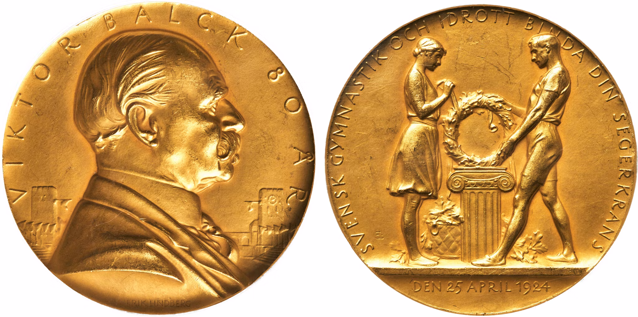 Victor Balck - Unik guldmedalj utdelad av kronprins Gustav Adolf Idrottens fader & ledamot i den första Internationella Olympiska Kommittén