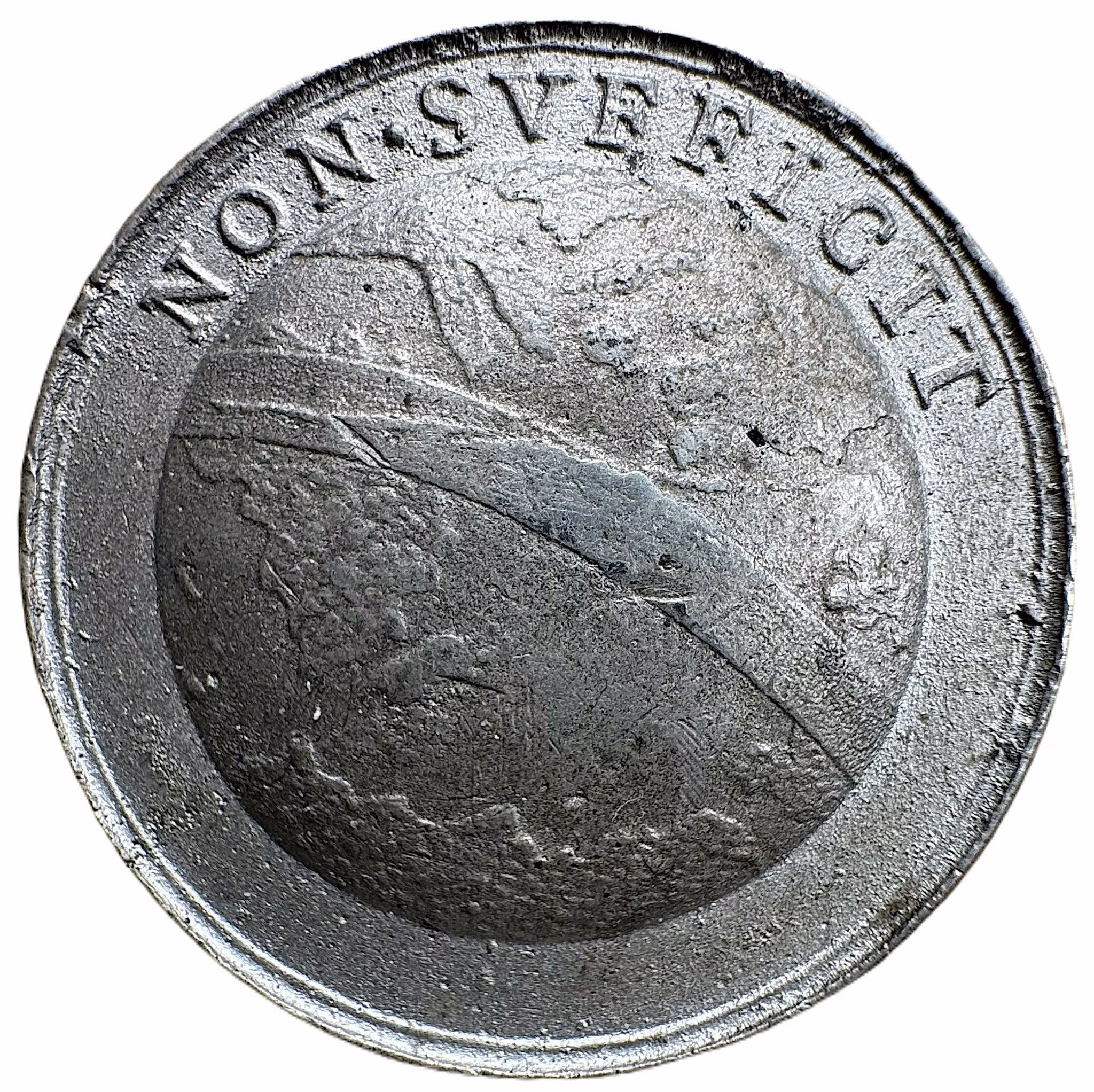 Jordglob visande gamla världens länder (Europa, Afrika, Asien) omslutet av ett band. Överst: "SVFFICIT". Översatt till svenska: "det är tillräckligt"