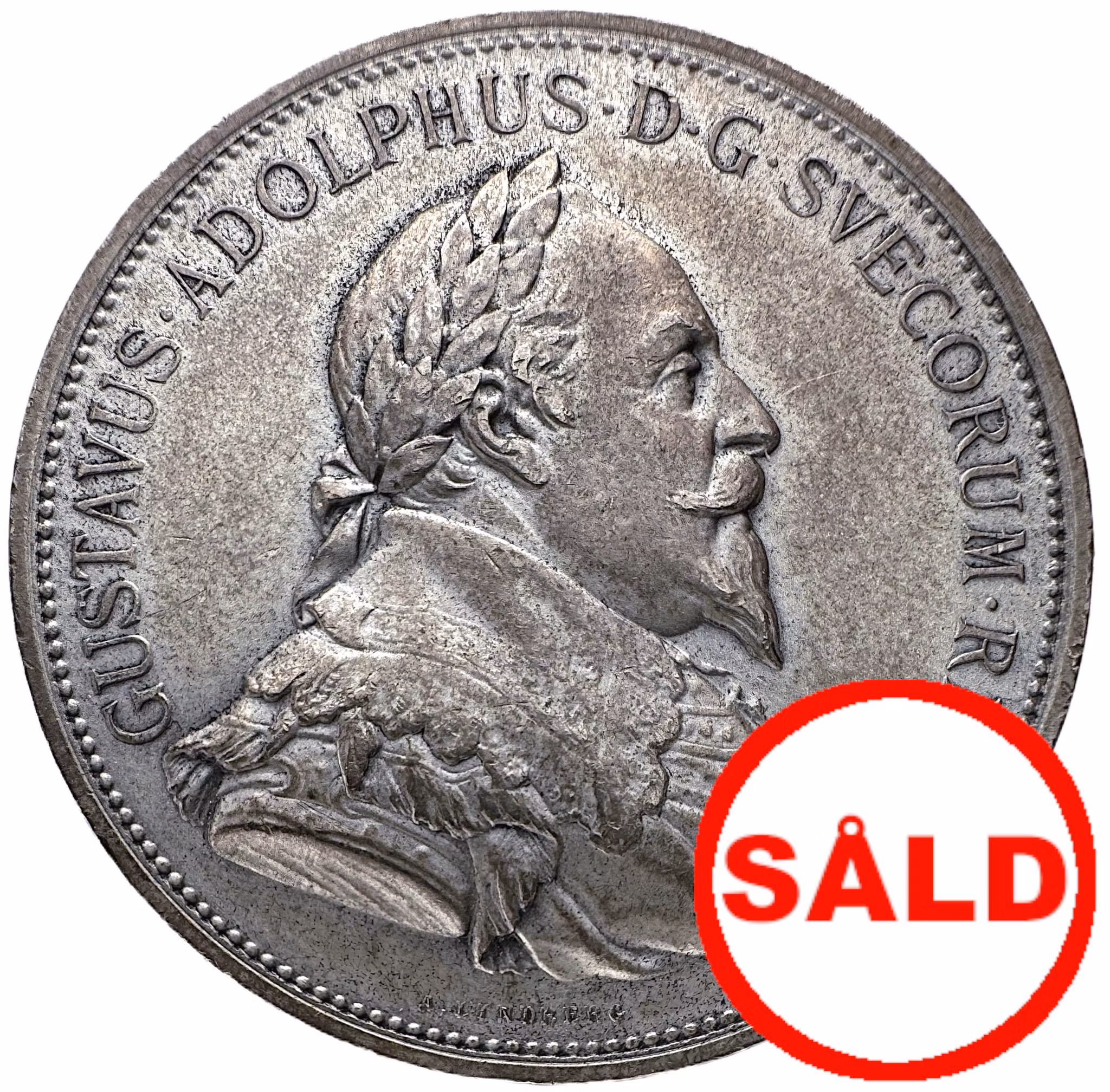 Denna silvermedalj bär på en berättelse som sträcker sig över tre sekel – från Trettioåriga krigets slagfält till 1930-talets historiska minneskultur. På åtsidan framträder Gustav II Adolf i hög relief, iförd rustning och lagerkrans, vänd åt höger. Omskriften lyder: GUSTAVUS ADOLPHUS D.G. SVECORUM REX