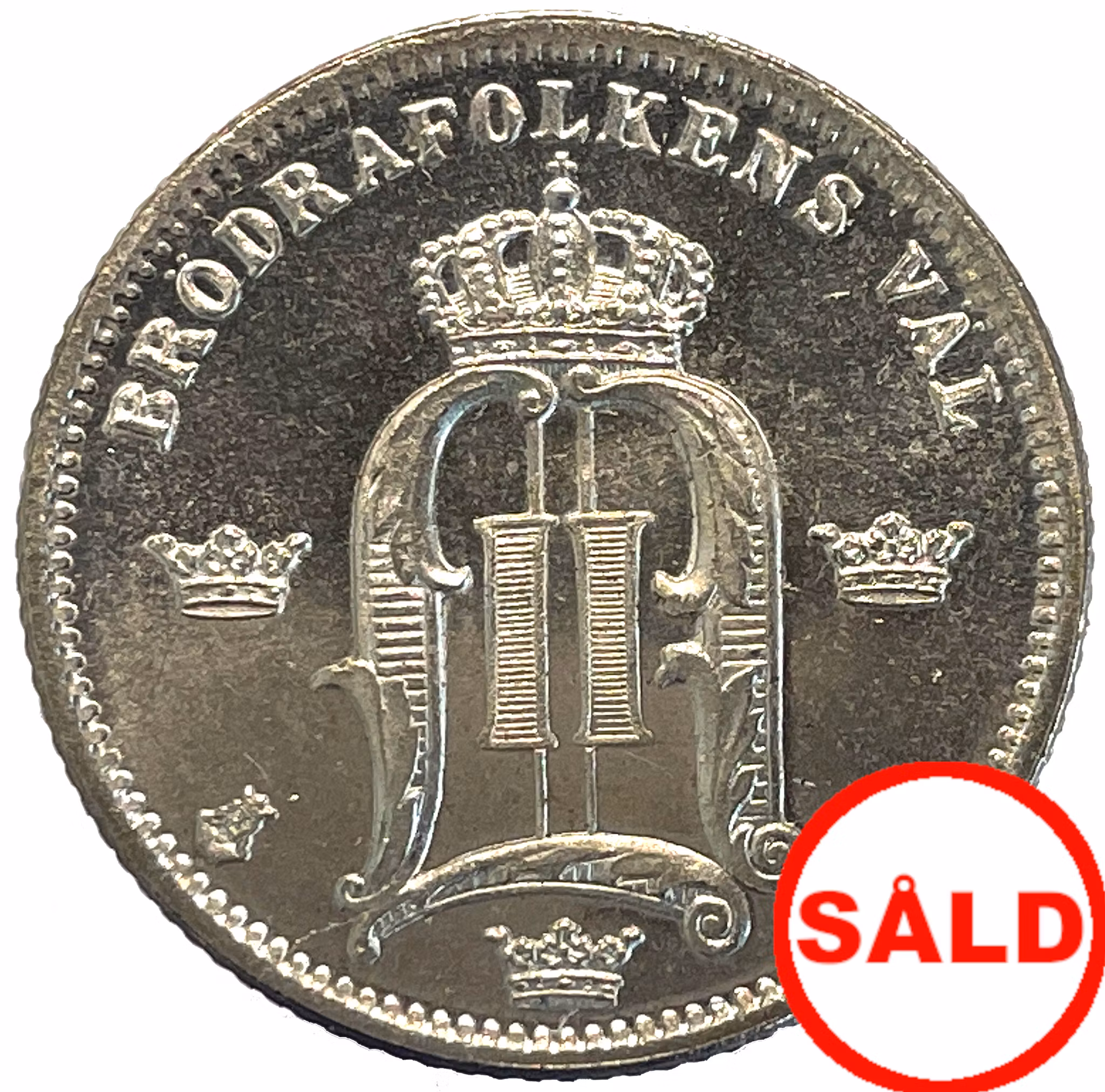 Oskar II - 50 Öre 1883 - Ett vackert ocirkulerat exemplar 0 kr 3 500 kr Oskar II - 50 Öre 1883 - Ett vackert ocirkulerat exemplarKvalitet 01/0, med underbar djup lyster och frostad relief, SMB 68