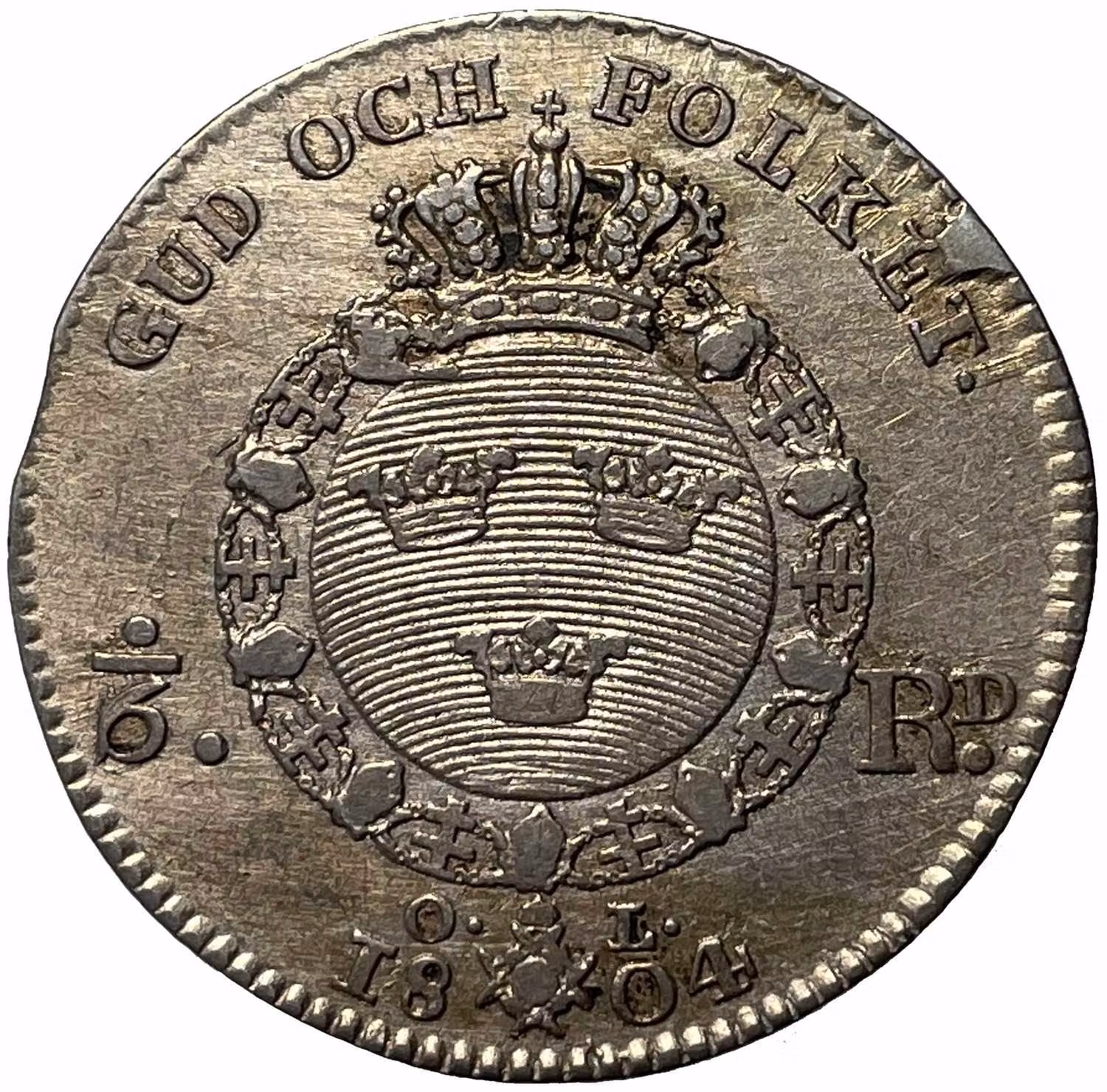 Gustav IV Adolf - 1/6 Riksdaler 1804 Produkten är tyvärr slut i lager. :( Gustav IV Adolf1/6 Riksdaler 1804, SMB 43, kvalitet 1/1+