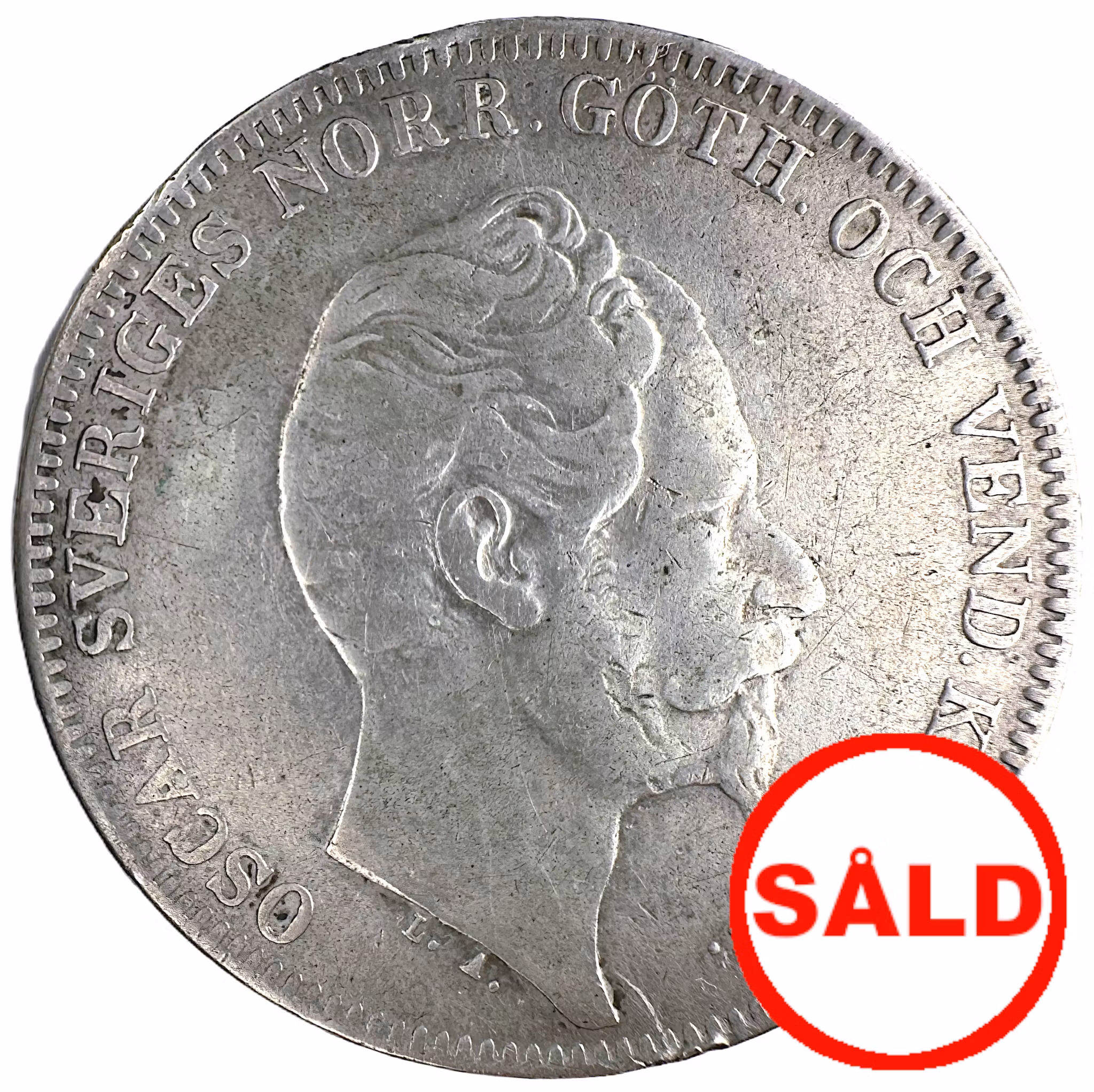 Oskar I - 1 Riksdaler Specie / 4 Riksdaler riksmynt 1857 Produkten är tyvärr slut i lager. :( Oskar I - 1 Riksdaler Specie / 4 Riksdaler riksmynt 1857Kvalitet god 1, kantskador, SMB 47