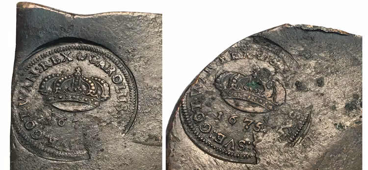 Karl XI - Plåtmynt 2 Daler SM 1675 - Osedvanligt välbevarat exemplar