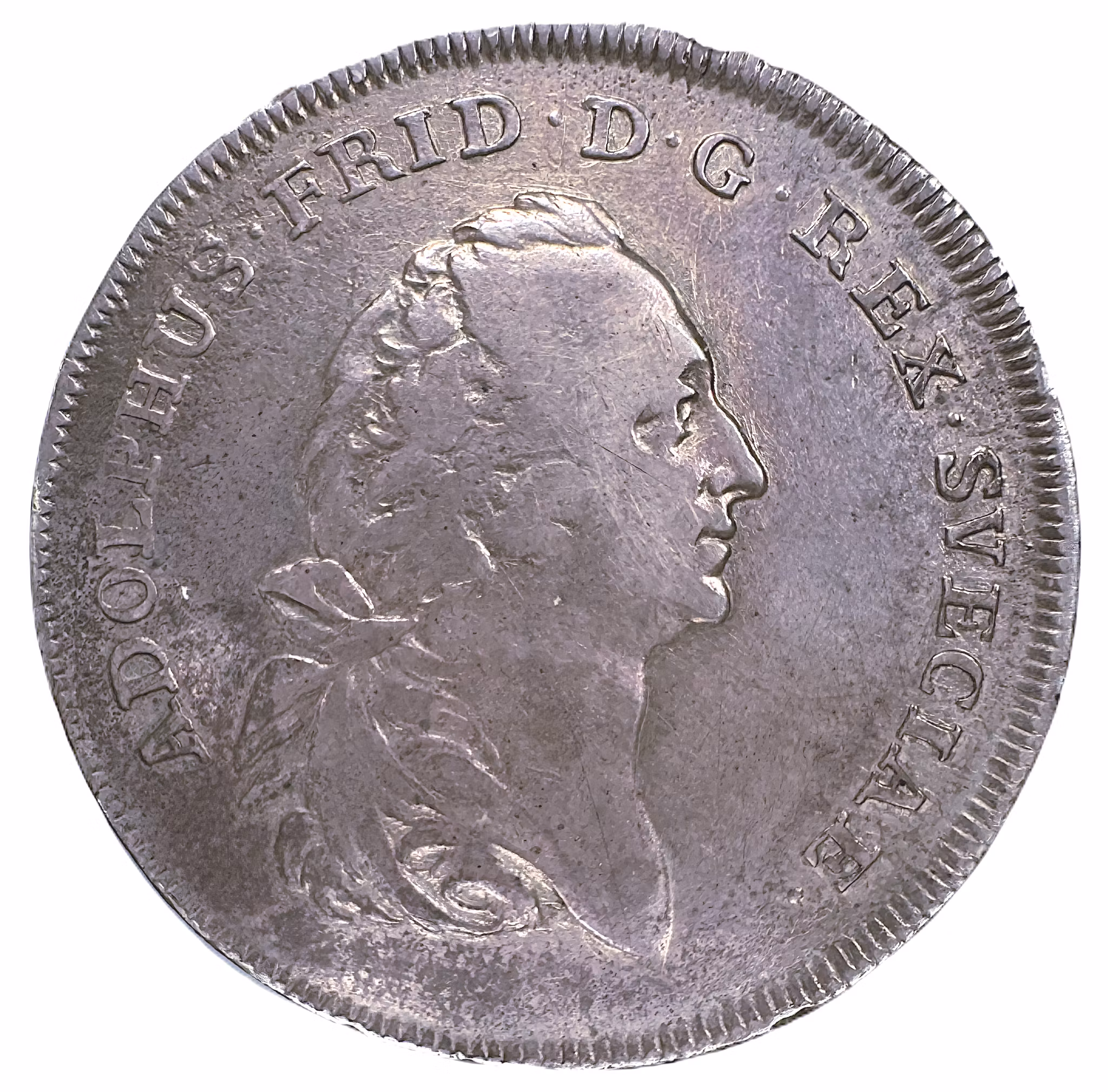 En extrem raritet bland de svenska mindre porträttmynten. 10.73g, 29mm, mindre märken, kvalitet 1/1+