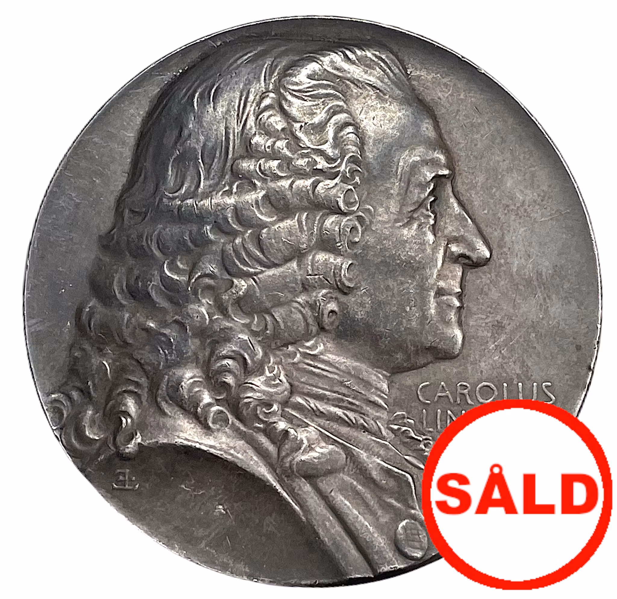 En imponerande silvermedalj (125,45 g, 60,5 mm), utgiven år 1907 till minne av Carl von Linnés 200-årsdag.På åtsidan Linnés högervända bild och på frånsidan en blomsterkrans omgivet av den latinska texten: "MELLIFLUA PANDIT NATURÆ ARCANA LOQUELA" som översatt kan tolkas som "Det honungslena språket blottar naturens hemligheter". En passande hyllning till en man som lyssnade till naturens röst och omvandlade den till vetenskap. I centrum på frånsidan återfinns den latinska texten: "VIR RERUM NATURÆ PERITISSIMUS OBIT MDCCLXXVIII" som översatt kan tolkas som: "En man ytterst kunnig i naturliga ting, dog 1778". Längst ned vid kanten gravören Erik Lindbergs namn.