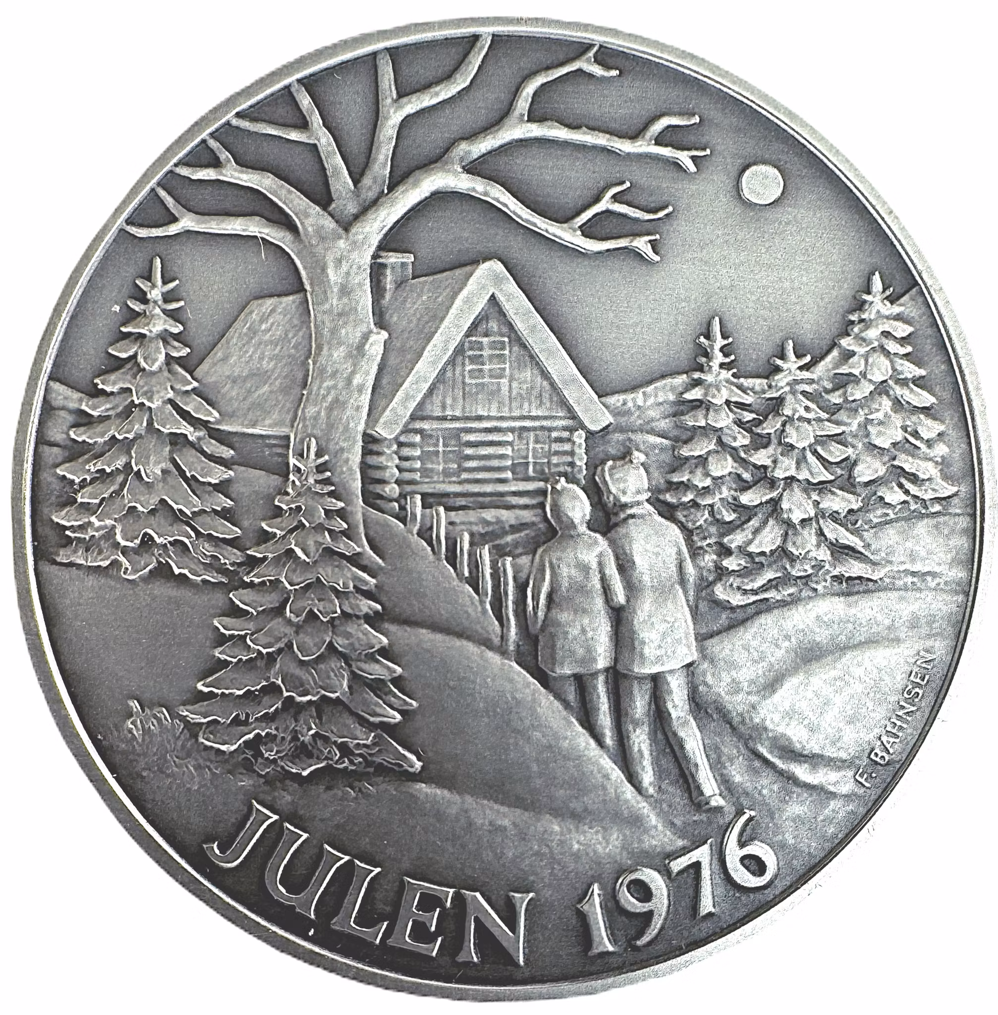 Carl XVI Gustaf & Silvia - Julen 1976 av F. Bahnsen 0 kr 1 250 kr Carl XVI Gustaf & Silvia - Julen 1976 av F. BahnsenKvalitet 01, silver, 35.19g, 45mm, nr 79 av 5000