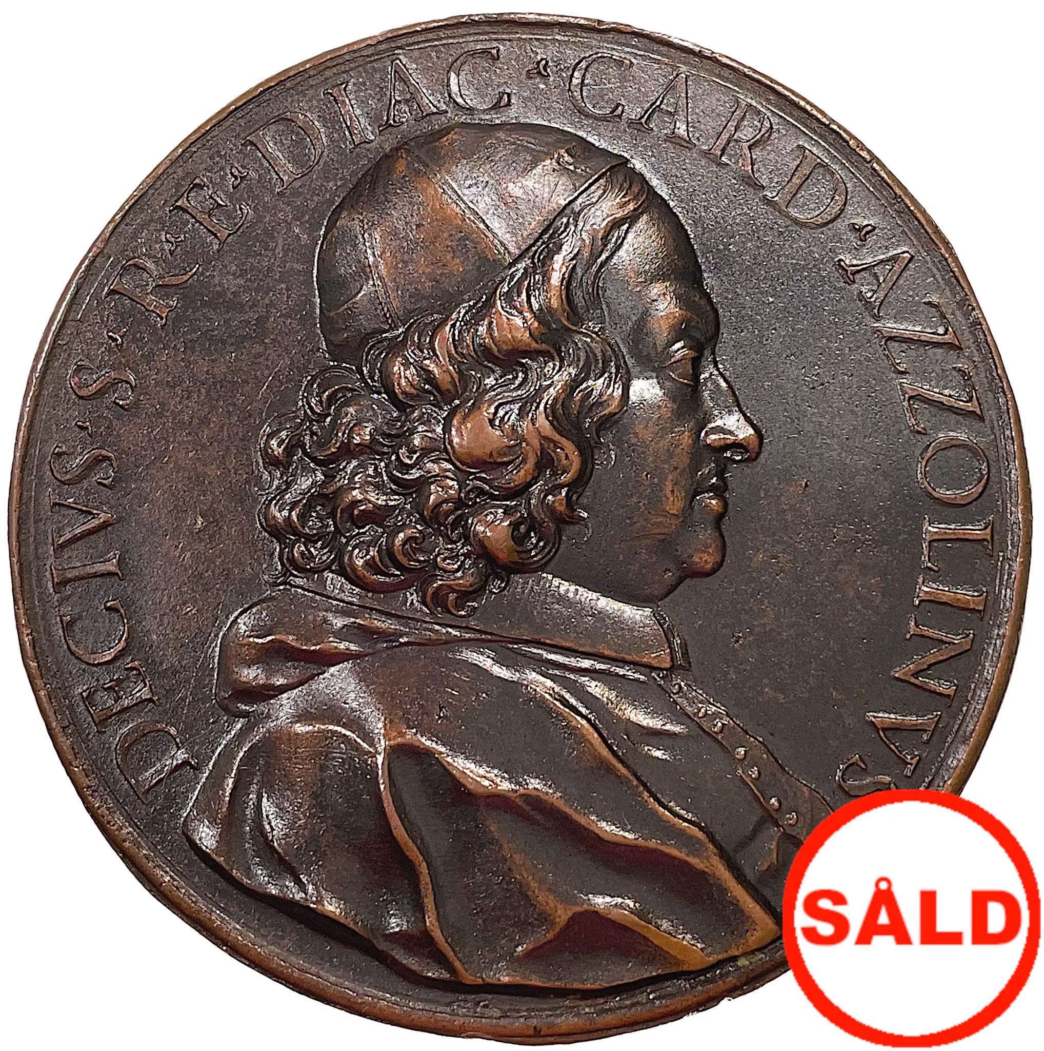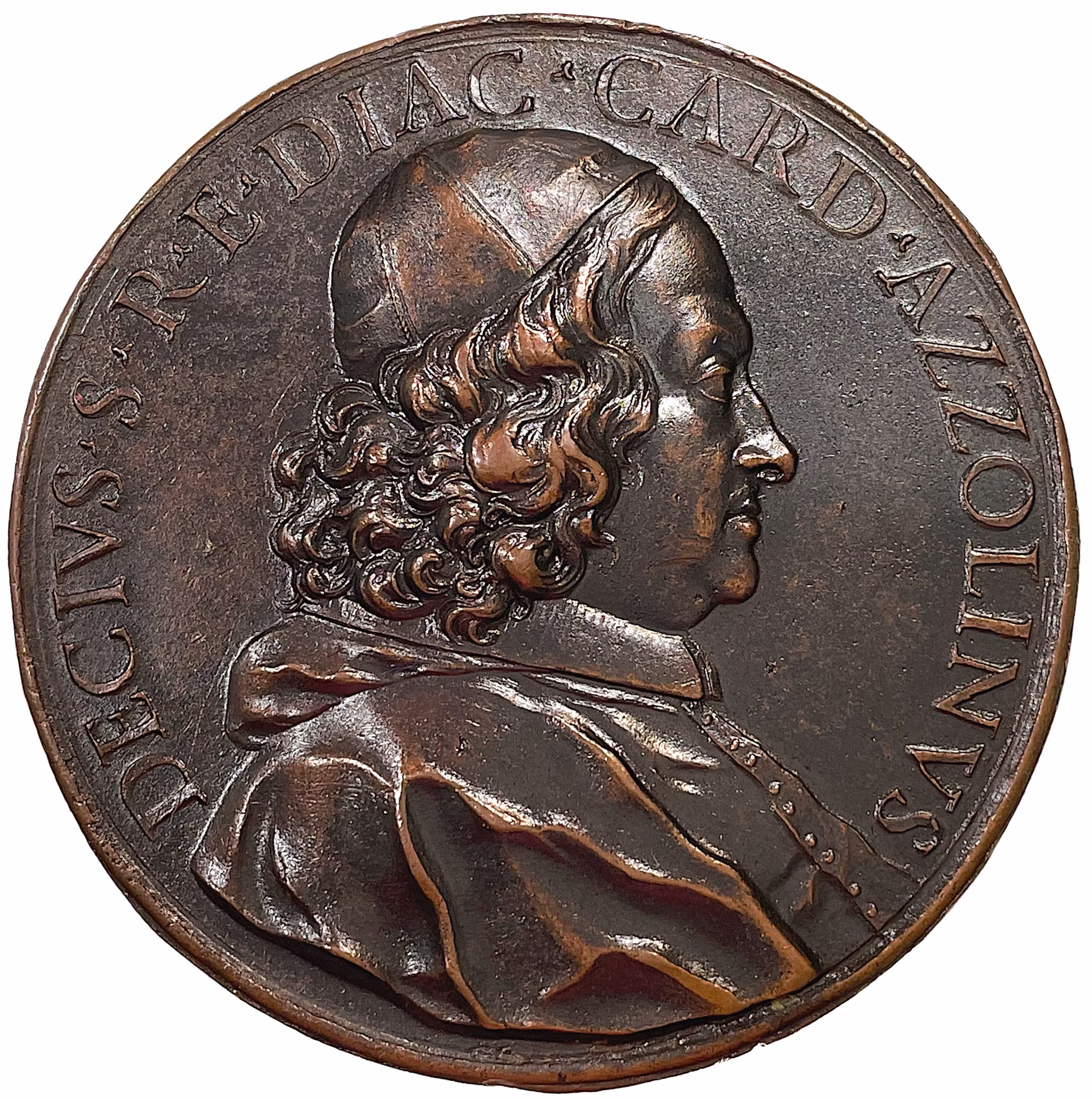 Kardinal Decio Azzolinos högervända bröstbild samt omskriften: "DECIVS*S*R*E*DIAC*CARD*AZZOLINVS"