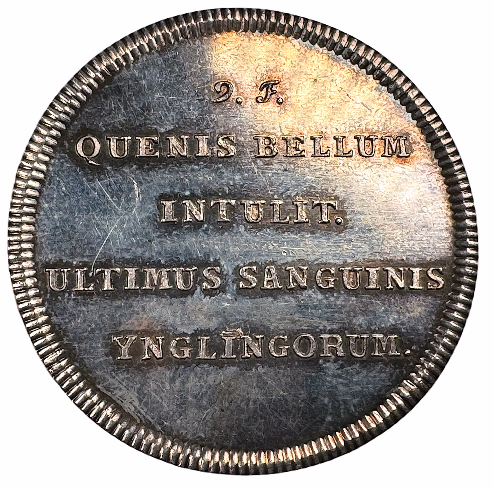 Den här typen av förväxling av stampar vid prägling har förekommit i alla tider. Den kan vara oavsiktlig eller avsiktlig lite beroende av stamparnas kondition. I det här fallet är den troligen oavsiktlig då medaljen präglades 1928 (stämplat på randen). Silver, 19.69g, 33mm, kvalitet 01
