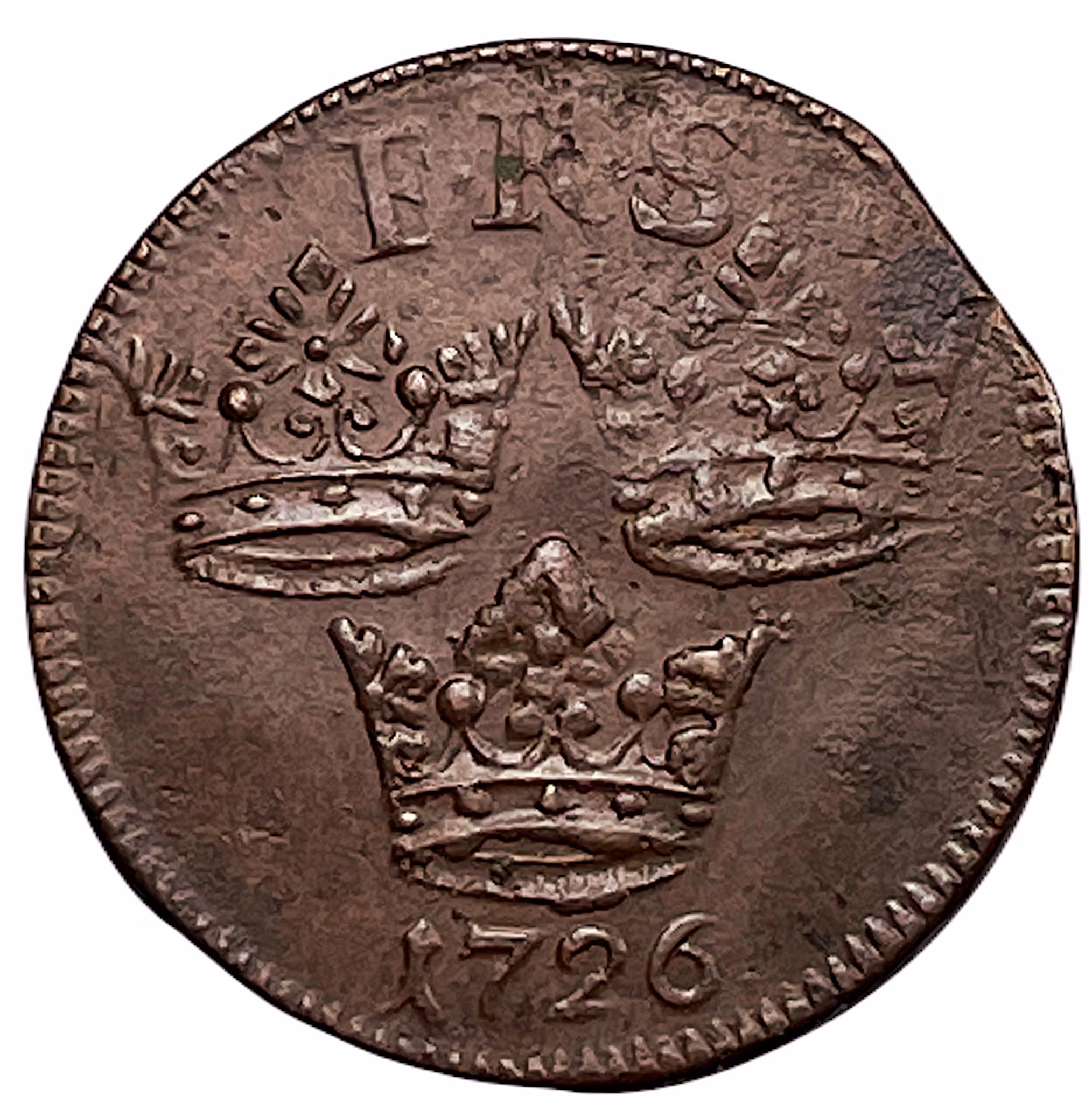 Fredrik I - 1 Öre KM 1726 - Trevligt exemplar 0 kr 1 250 kr Fredrik I - 1 Öre KM 1726 - Trevligt exemplarKvalitet 1+/01, viss råhet i ämnet och något svagt utpräglad, SMB 417, 5.05g,