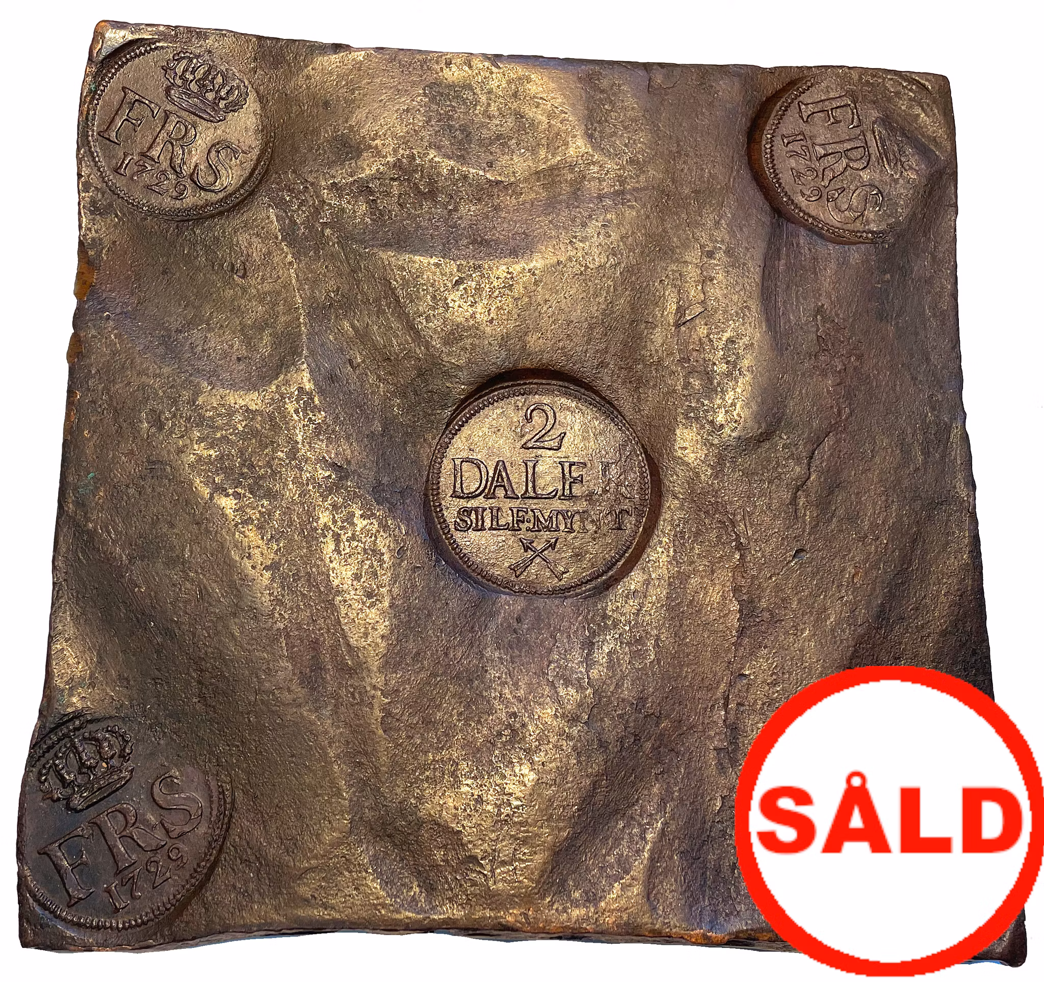 Ett mycket vackert plåtmynt, med fina bottenstämplar. I praktiken ett orört exemplar av ett sällsynt årtal. Ett tillfälle! Kvalitet 01, SMB 234, 17x16,5cm, ca 1.5kg