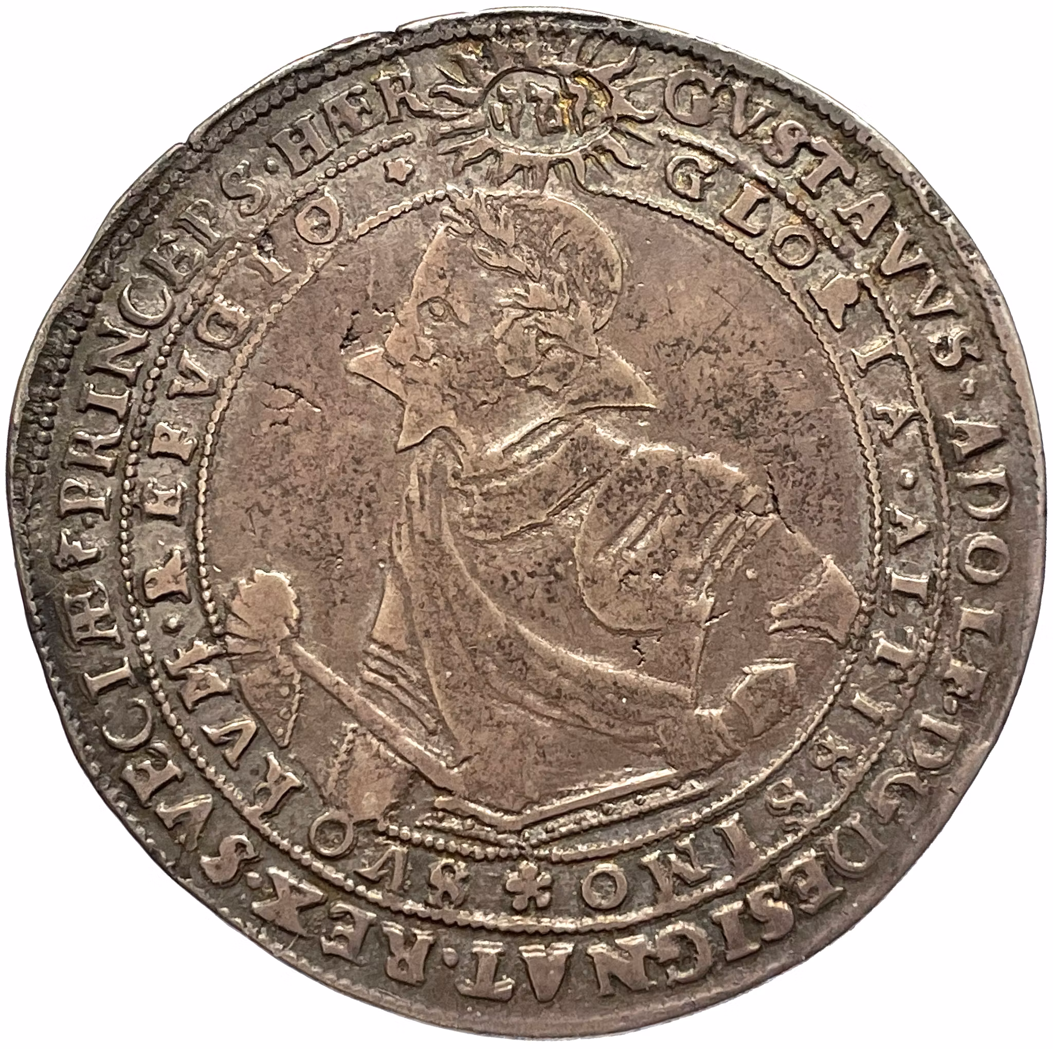 Gustav II Adolf, 4 Mark 1617 med HÆR - Vackert exemplar med fin originalpatina Produkten är tyvärr slut i lager. :( Gustav II Adolf, 4 Mark 1617 med HÆR - Vackert exemplar med fin originalpatinaKvalitet god 1+, SMB 54, 19.32g