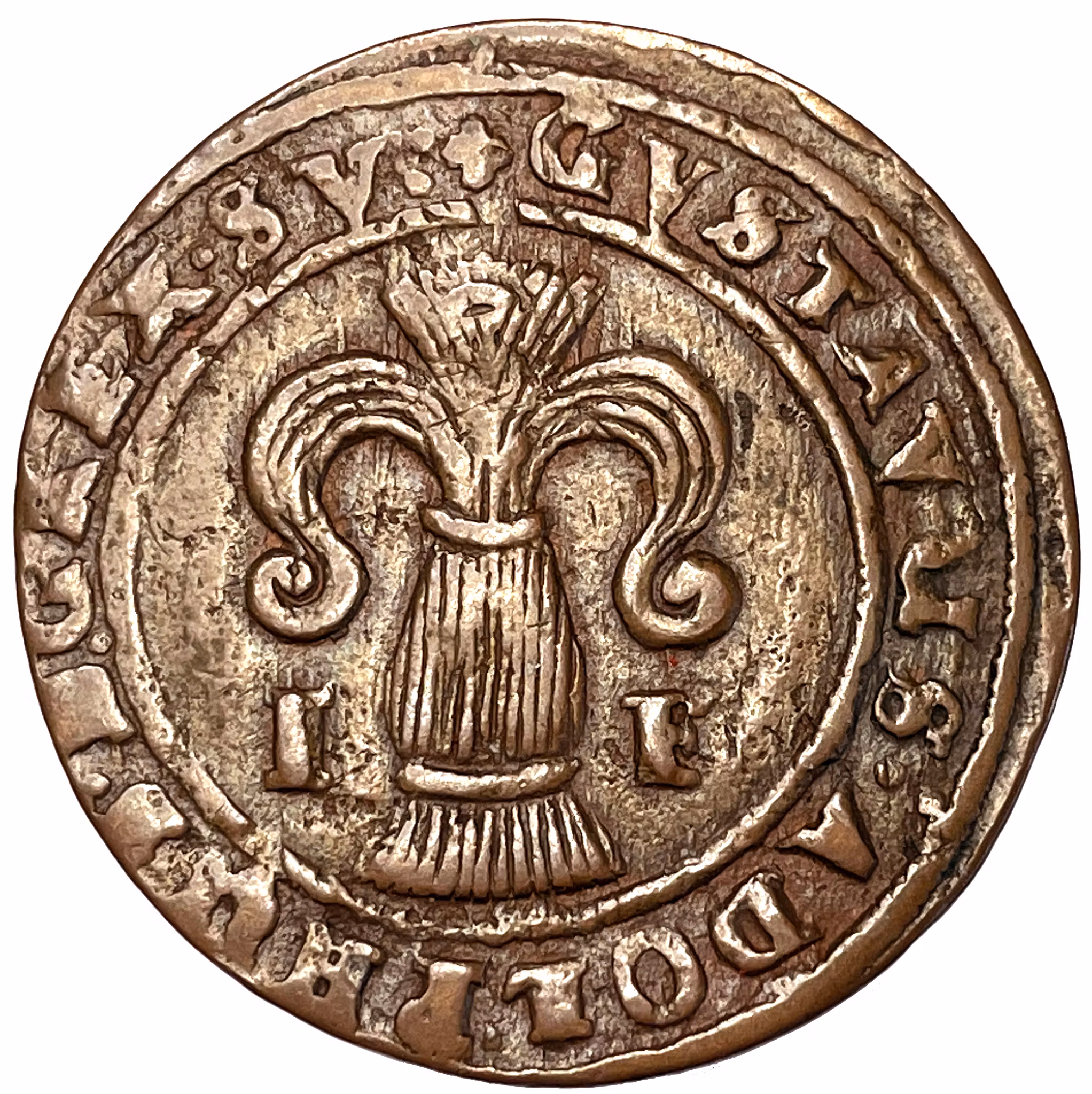 Gustav II Adolf, Nyköping, Fyrk 1629 - Trevligt exemplar Produkten är tyvärr slut i lager. :( Gustav II Adolf, Nyköping, Fyrk 1629 - Trevligt exemplarSMB 276, med årtal i omskriften, kvalitet 1+