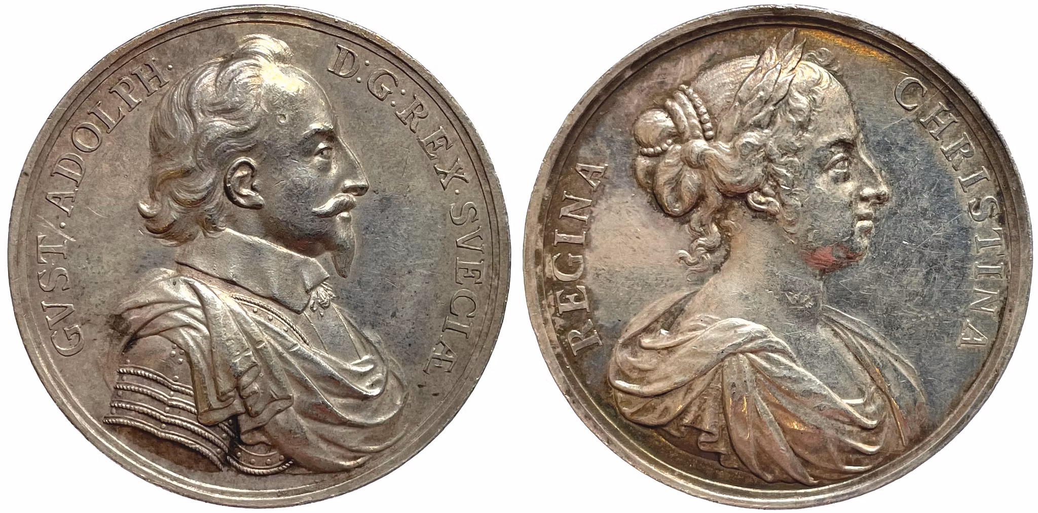 Gustav II Adolfs högervända bröstbild samt omskriften: " GVST•ADOLPH•D:G:REX•SVECIÆ"