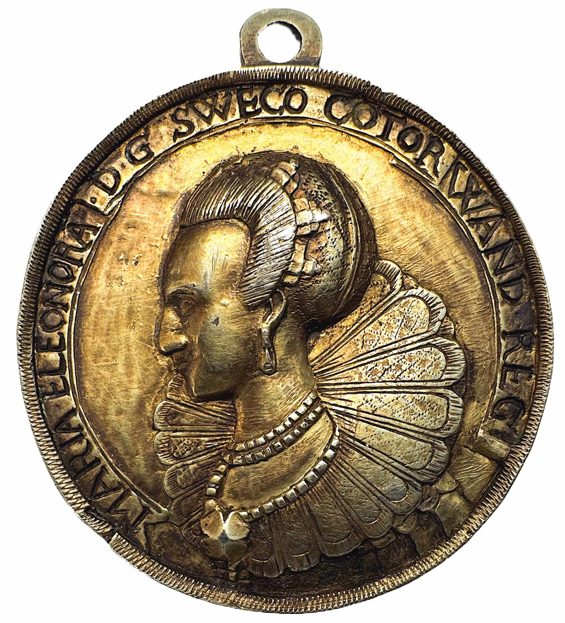 Det föreliggande exemplet är av exceptionell kvalitet: detaljskärpan är mycket hög, och förgyllningen är i stort sett helt bevarad. Även om medaljer av denna typ inte är sällsynta i sig, är det ytterst ovanligt att påträffa ett exemplar i så välbevarat skick. Denna typ av medaljer började tillverkas 1626 och fortsatte att framställas fram till kungens död 1632. I min senaste katalogisering, Sveriges kungliga medaljer, har jag dokumenterat en rad olika porträttvarianter av kungaparet från denna period. De flesta medaljer är gjutna i silver, ofta förgyllda. Vissa varianter är dekorerade med emalj, och i mycket sällsynta fall förekommer exemplar i guld.