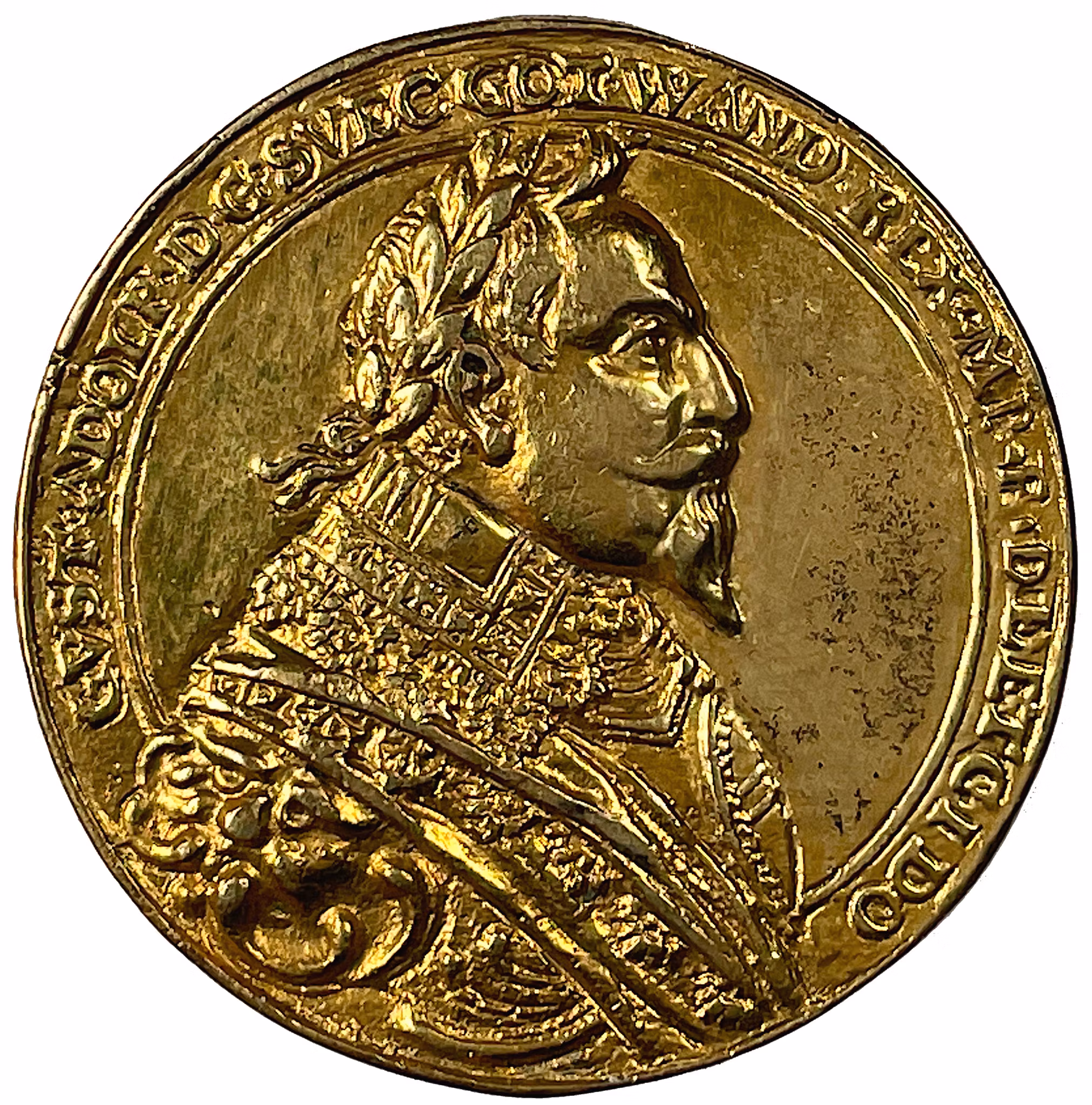 Under början av 1600-talet var de flesta medaljerna gjutna och sedan efterbearbetade och detaljer graverade så även denna medalj, där ytorna visar spår av denna efterbearbetning, ibland förgylldes och emaljerades medaljerna. Detta exemplar är i förgyllt silver. Kvalitet 1+/01+, 14.51g, 36mm, Hildebrand 304. Ett läckert exemplar med proveniens från en av de större medaljsamlingarna.