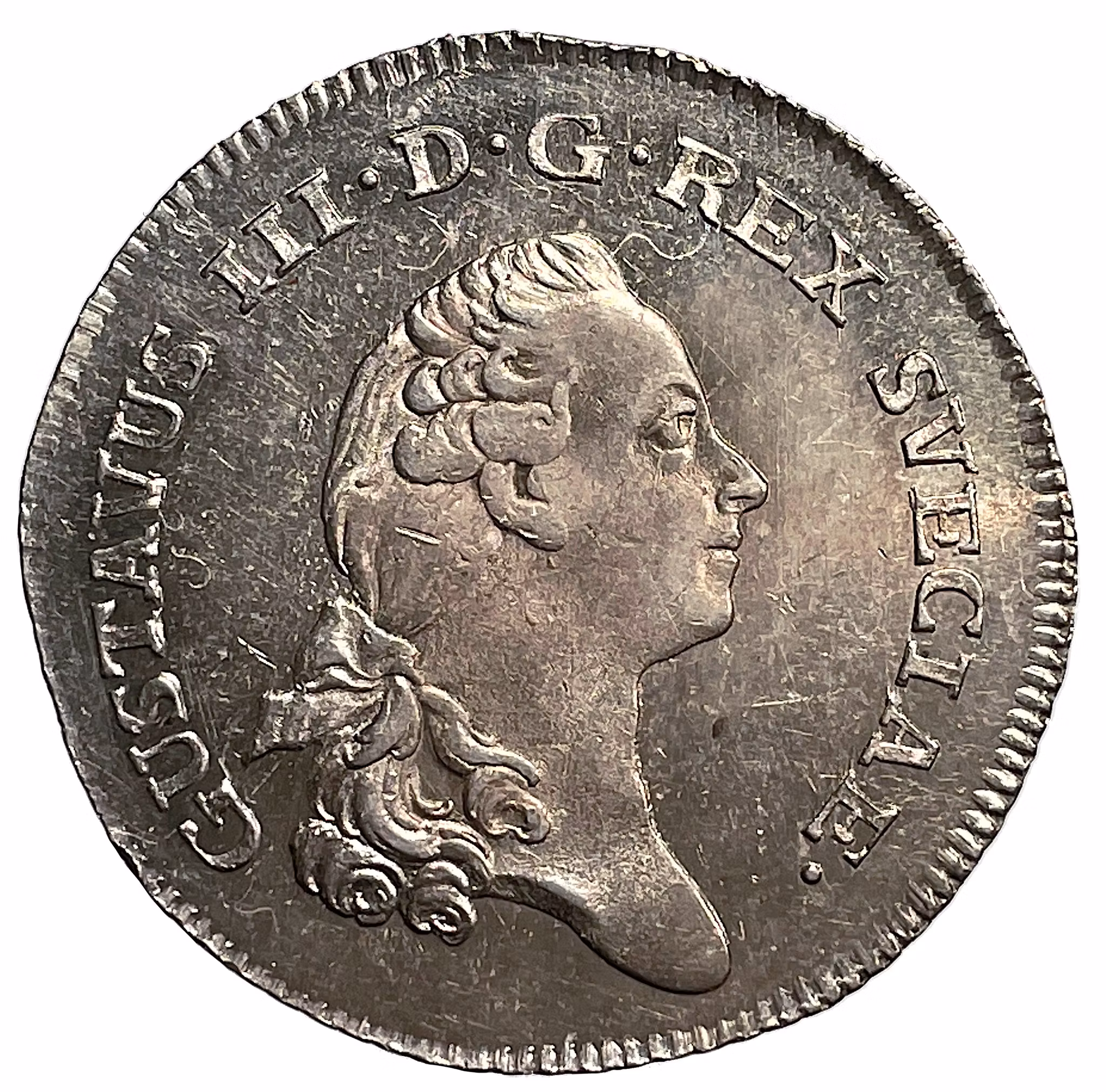 Gustav III, 1/3 Riksdaler 1788 - Ett vackert ocirkulerat exemplar med bottenstriering och fin lyster