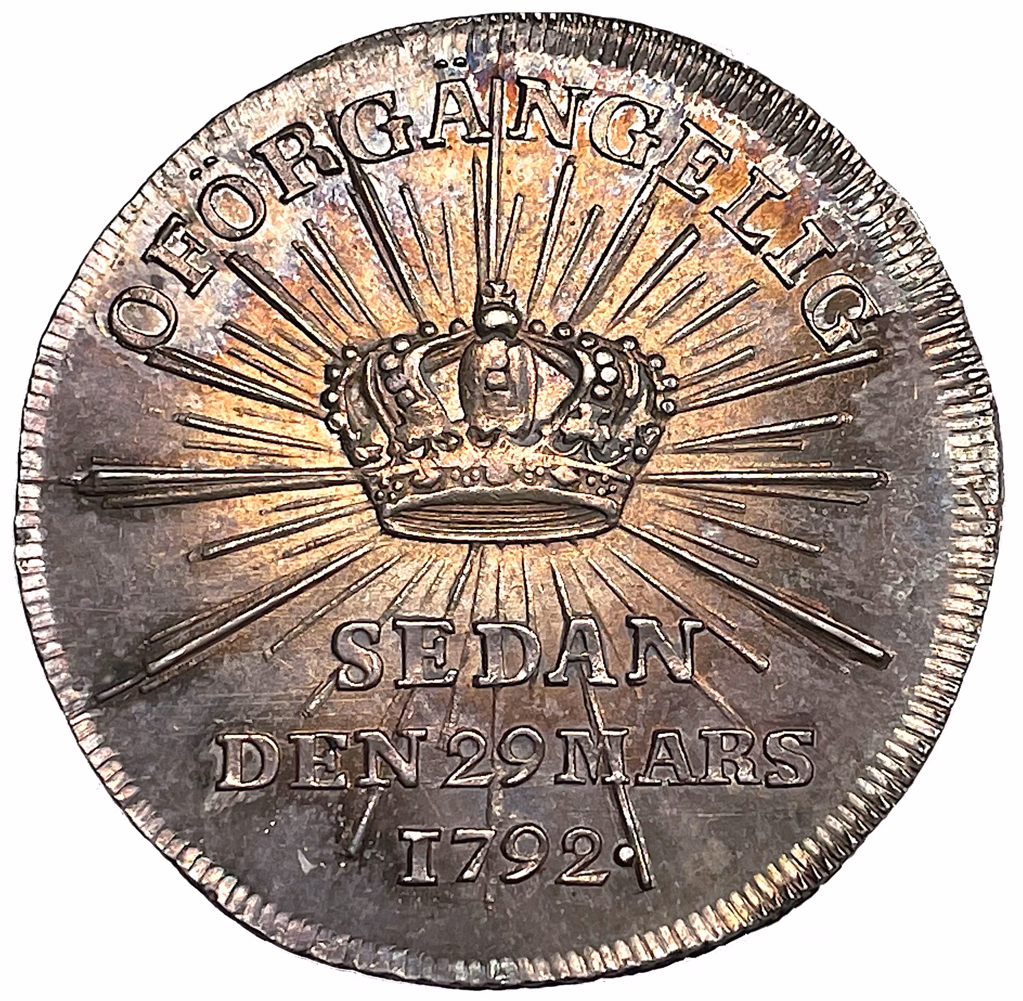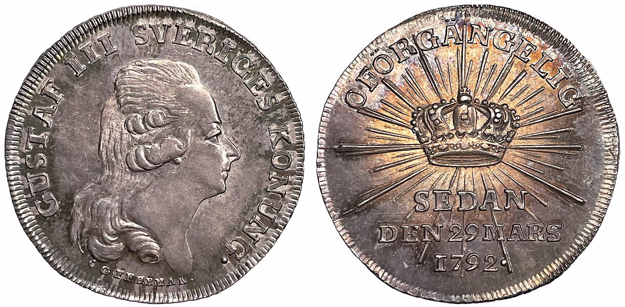Gustav III, 1/3 Riksdaler 1792 - Kastmynt till konungens begravning - Ett mycket vackert exemplar