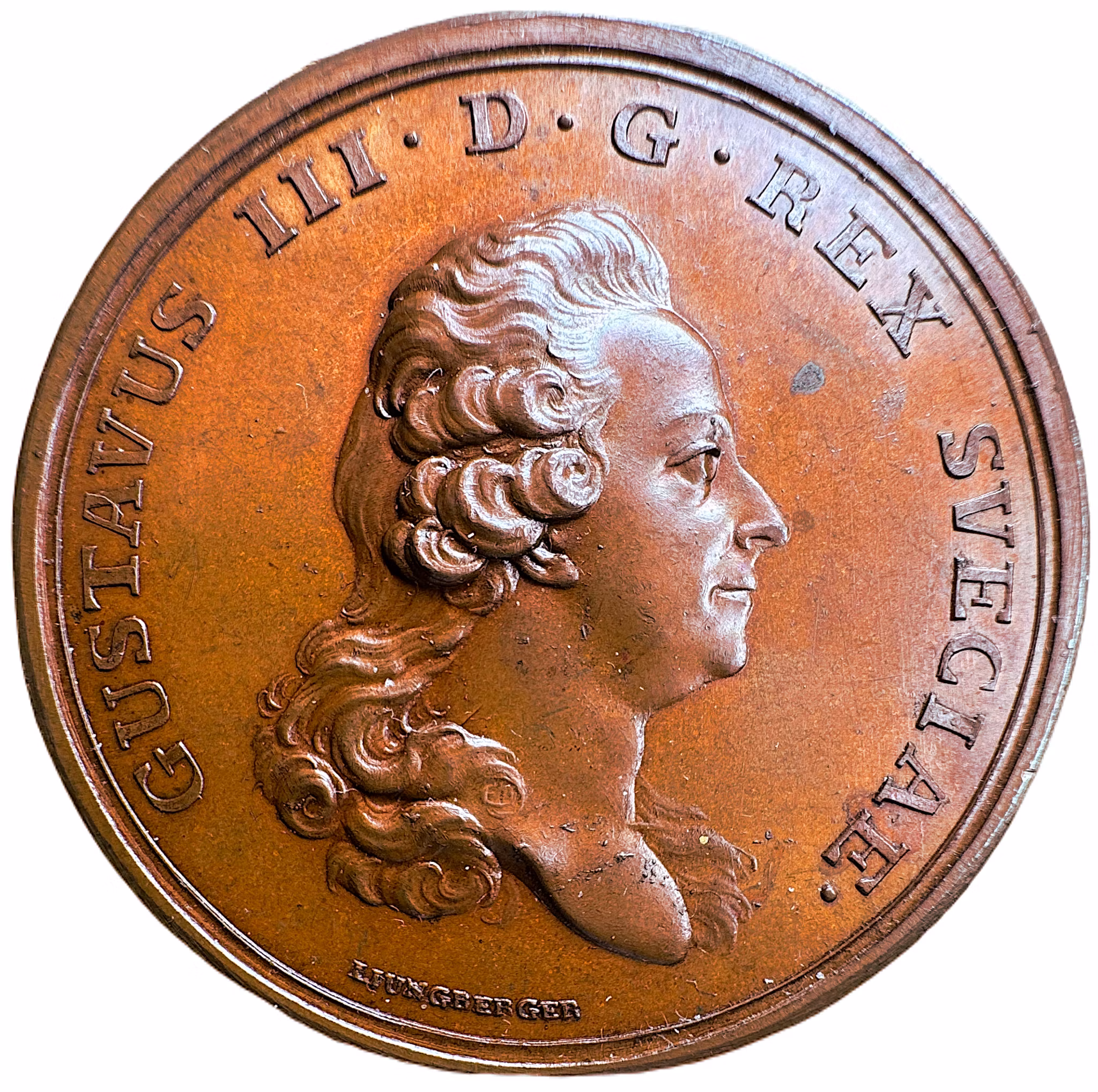 Konungens högervända bild, under bilden "LIUNGBERGER". I omskriften: "GUSTAVUS III•D•G•REX SVECIAE•".