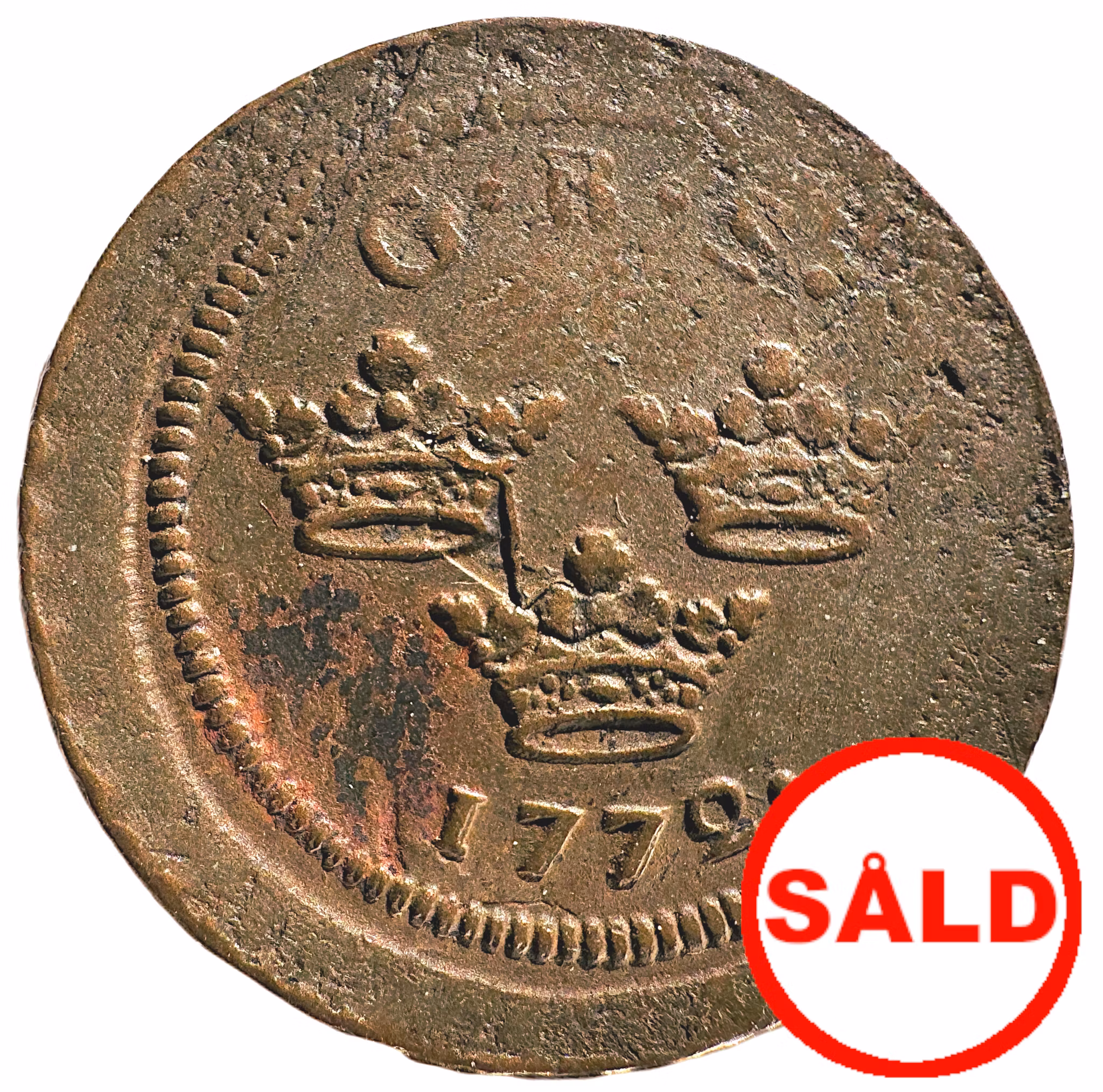 Gustav III - Pojköre - 1 Öre KM 1772 - Präglad på större och tjockare plants - En klassisk typraritet!