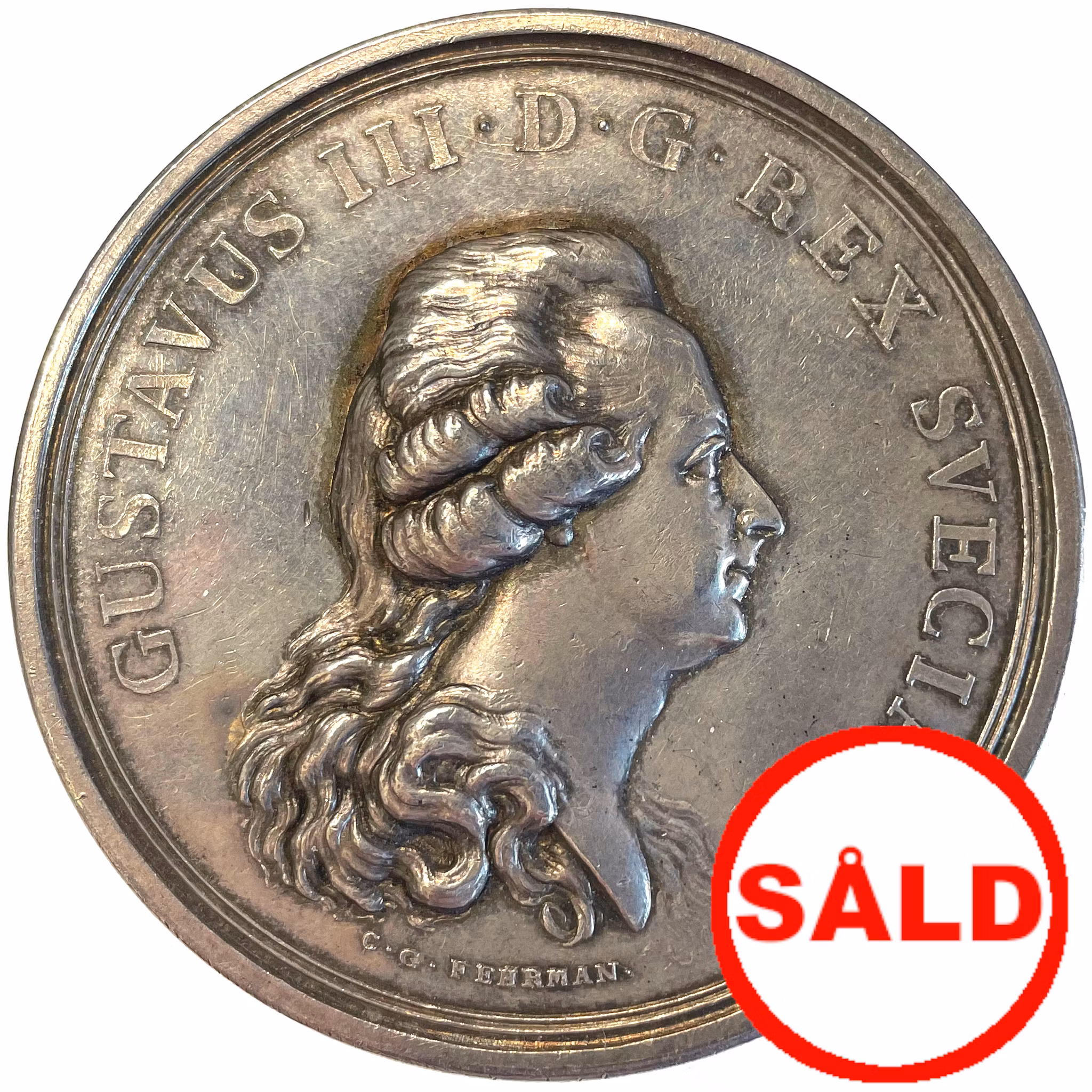 Konungens högervända bild samt omskriften: "GUSTAVUS III. D. G. REX SVECIAE", under bilden gravörens namn: "C. G. FEHRMAN."