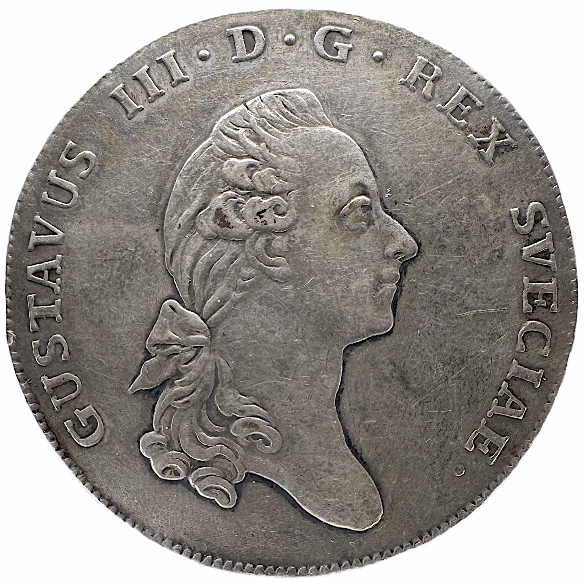 Gustav III, Riksdaler 1776 0 kr 1 500 kr Gustav III, Riksdaler 1776Rengjord, märken, kvalitet 1/1+, SMB 13