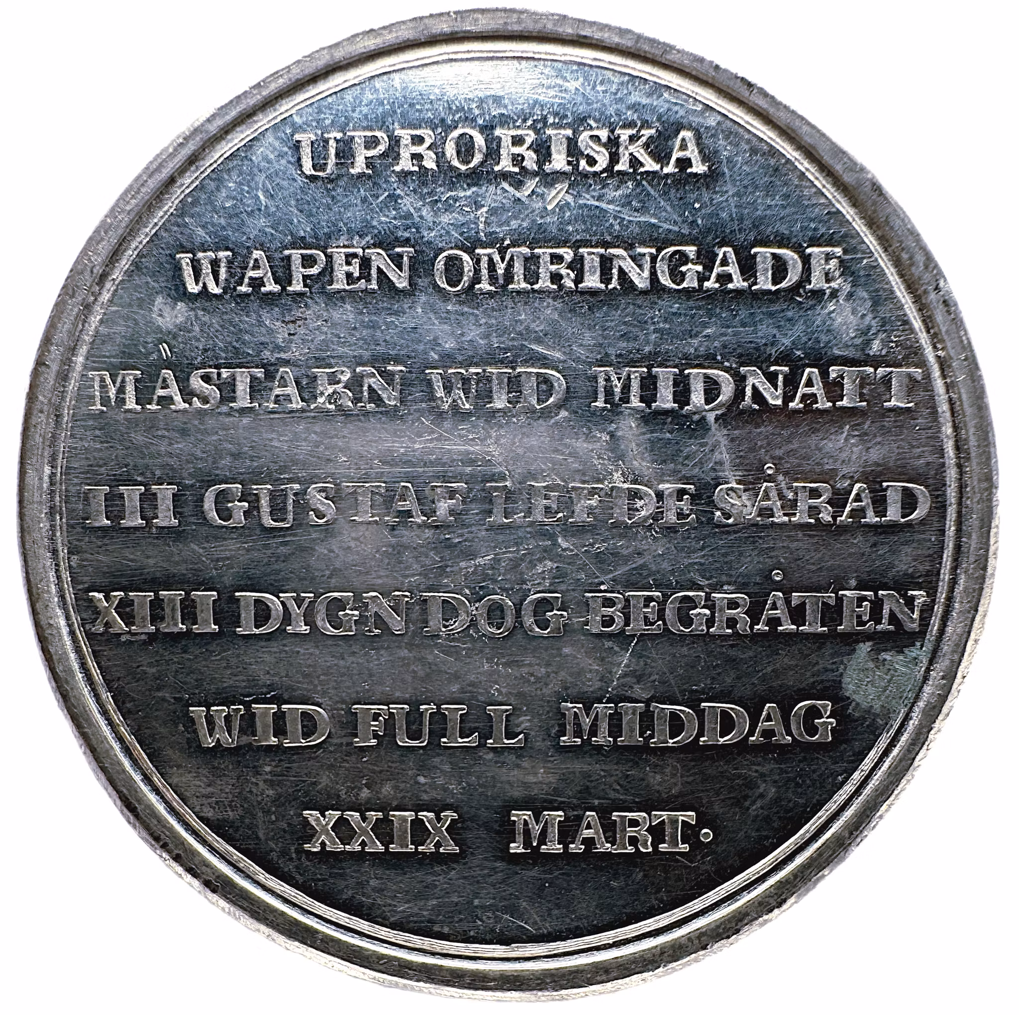 Gustav III:s död i Stockholm den 29 mars och begravning i Riddarholmskyrkan den 14 maj 1792 av Carl Gustaf Fehrman - Extremt sällsynt i tenn - Enda noterade exemplaret - RRR
