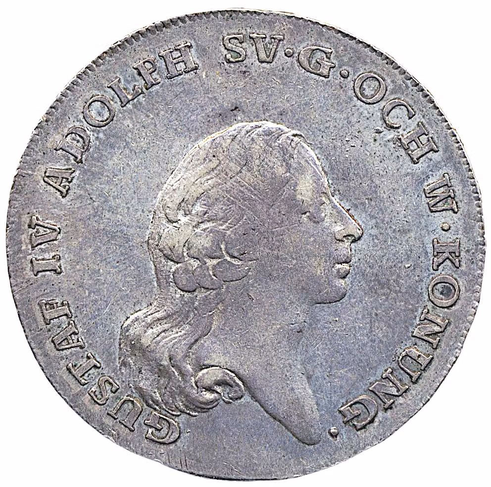 Gustav IV Adolf - Riksdaler 1796 - Ett tilltalande exemplar 0 kr 8 500 kr Gustav IV Adolf - Riksdaler 1796 - Ett tilltalande exemplarEtt tilltalande exemplar med bra prägling och lyster. Endast helt obetydliga plantsrispor. Kvalitet 1+/01, Porträtt 1, SMB 22
