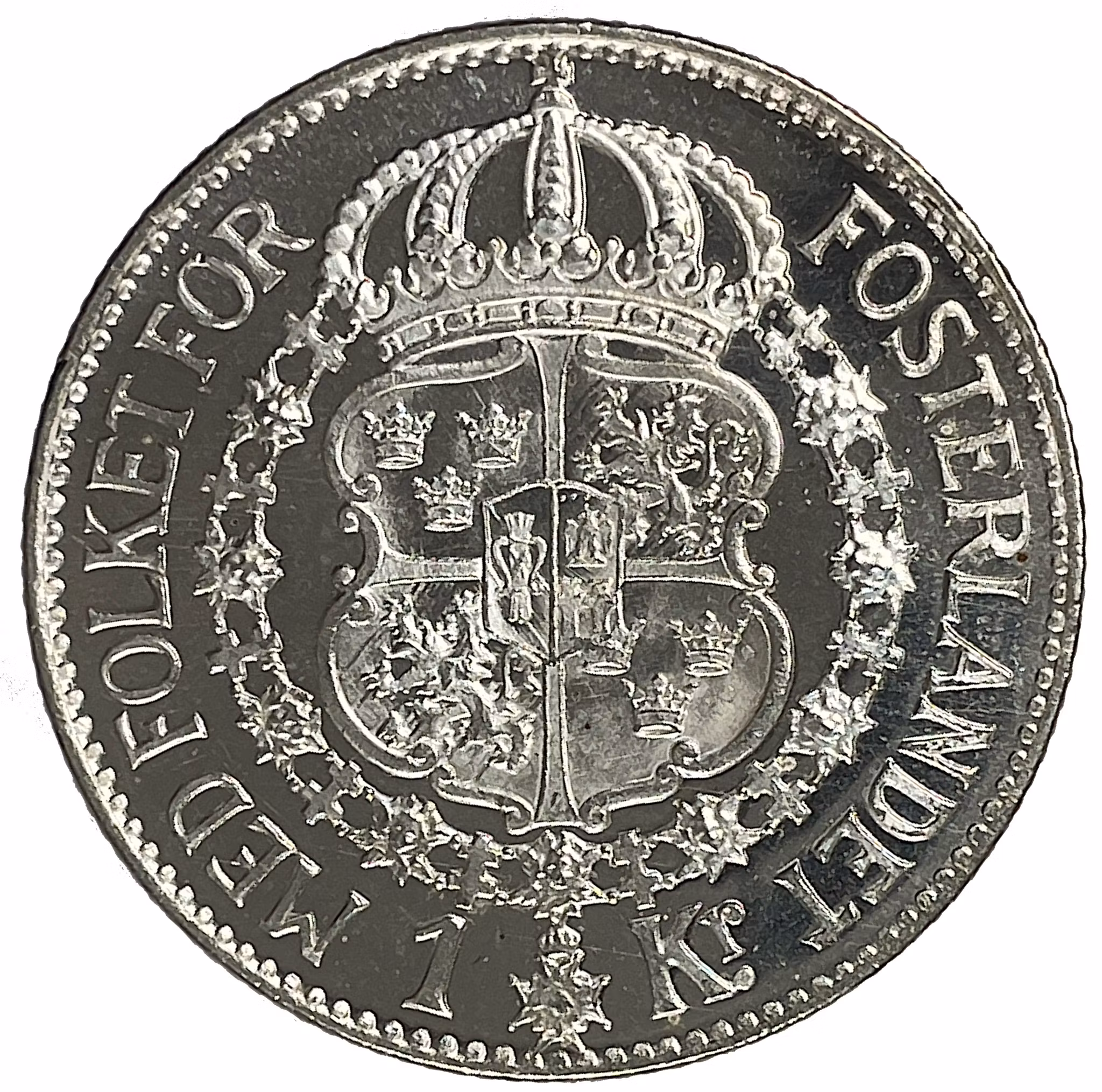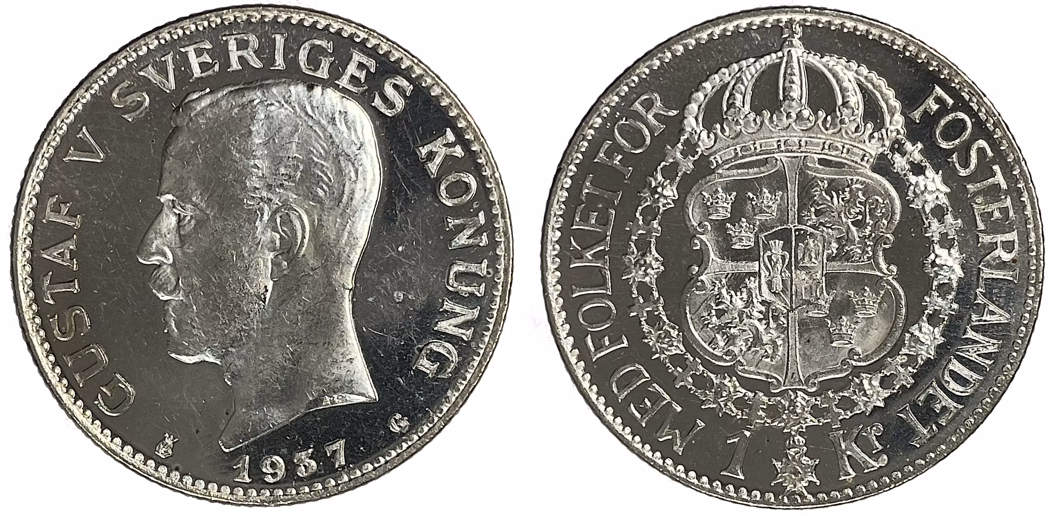 Gustav V, 1 Krona 1937 - Djup spegelkaraktär
