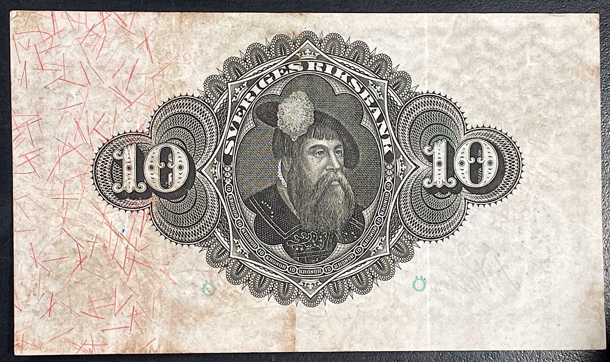 Gustav V - 10 kronorsedel 1912 Produkten är tyvärr slut i lager. :( Gustav V - 10 kronorsedel 1912Kvalitet 1+, baksidan lätt smutsig, DSS939, Nr C, 180146
