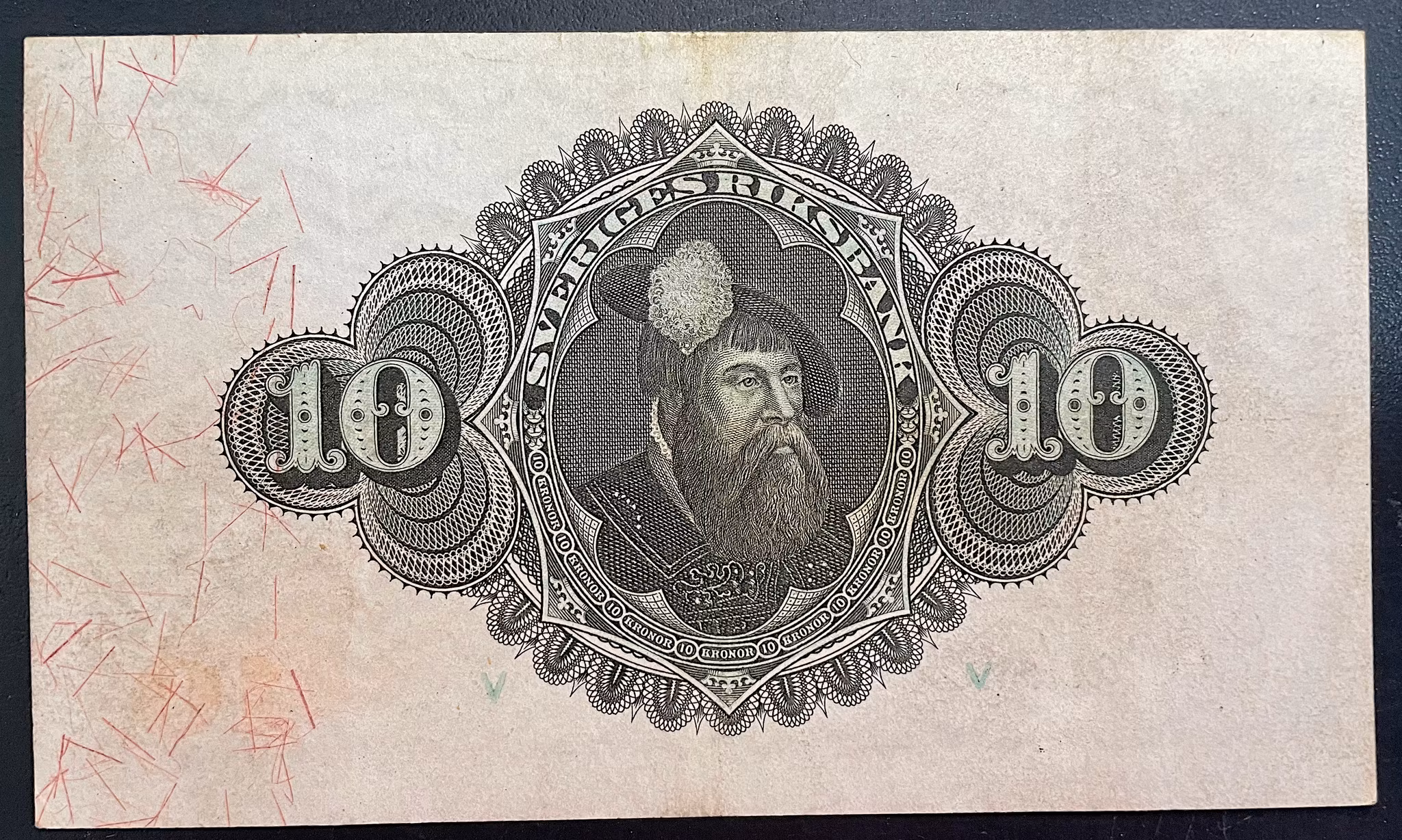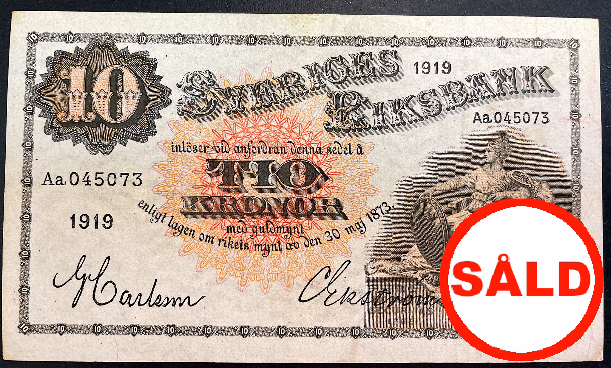 Gustav V - Vacker 10 kronorsedel 1919 Produkten är tyvärr slut i lager. :( Gustav V - Vacker 10 kronorsedel 1919Ett ovikt exemplar med fräsht och krispt papper, kvalitet 1+/01, Aa, 045073, DSS 946
