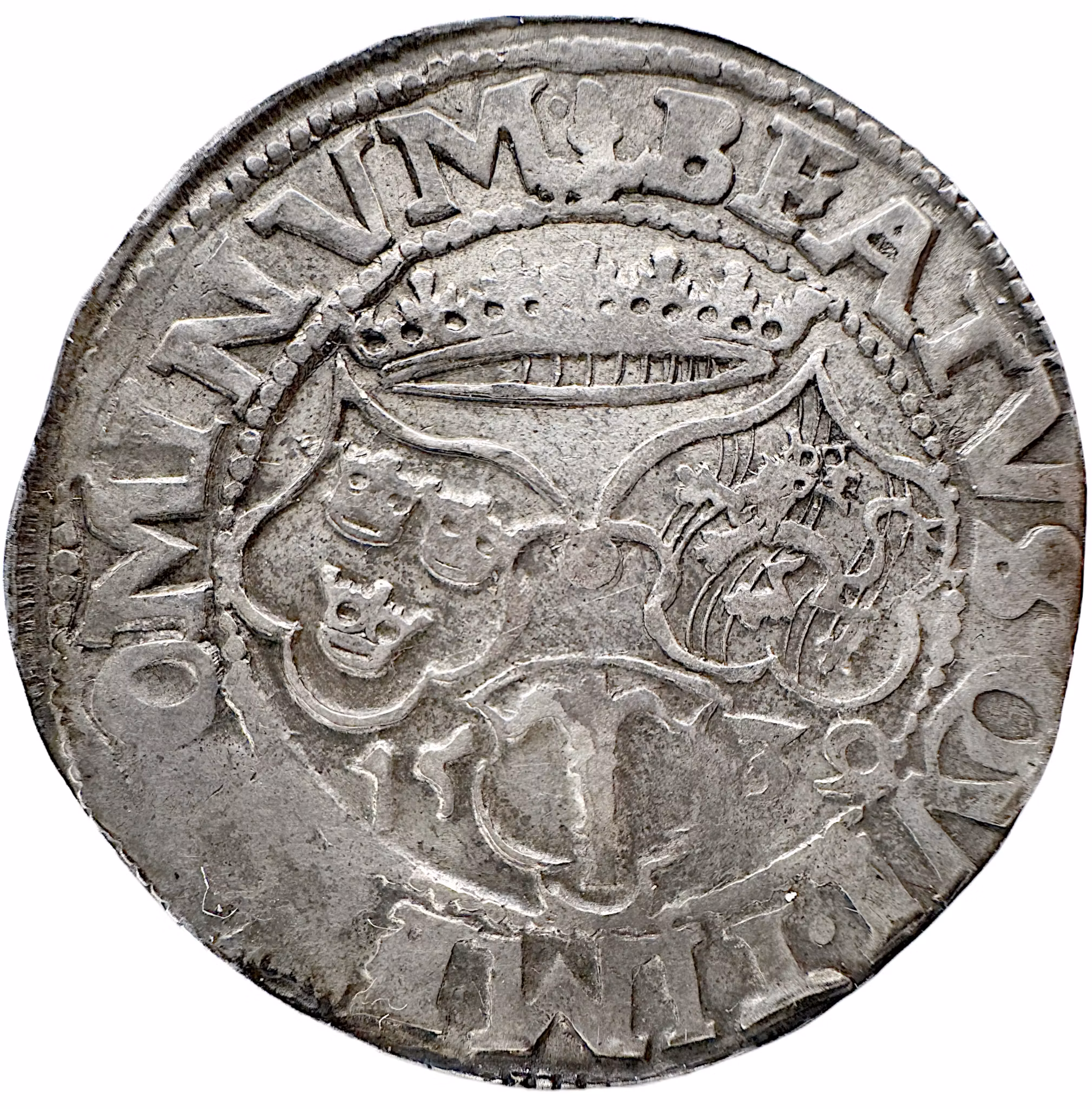 På myntets frånsida finner vi ett litet ekollon. Detta var myntmästaren Hans Hanssons märke. Hansson var verksam i Västerås under den korta perioden 1539–1540, innan han flyttades vidare för att leda myntningen på Svartsjö slott (1541–1550) och därefter i Åbo (1556–1558). Detta mynt, präglat i en begränsad upplaga, bär inte bara Hanssons personliga signatur, utan även konungens valspråk Beatus qui timet Dominum (Salig är den som fruktar Herren). Orden understryker Gustav Vasas patriarkala och absoluta anspråk – han styrde nu riket ohotad, med full kontroll över både religion och ekonomi. Myntet är ett sällsynt och fascinerande dokument från det ögonblick då Gustav Vasa omvandlade Sverige från ett lösligt styrt rike till en välorganiserad, suverän arvmonarki.
