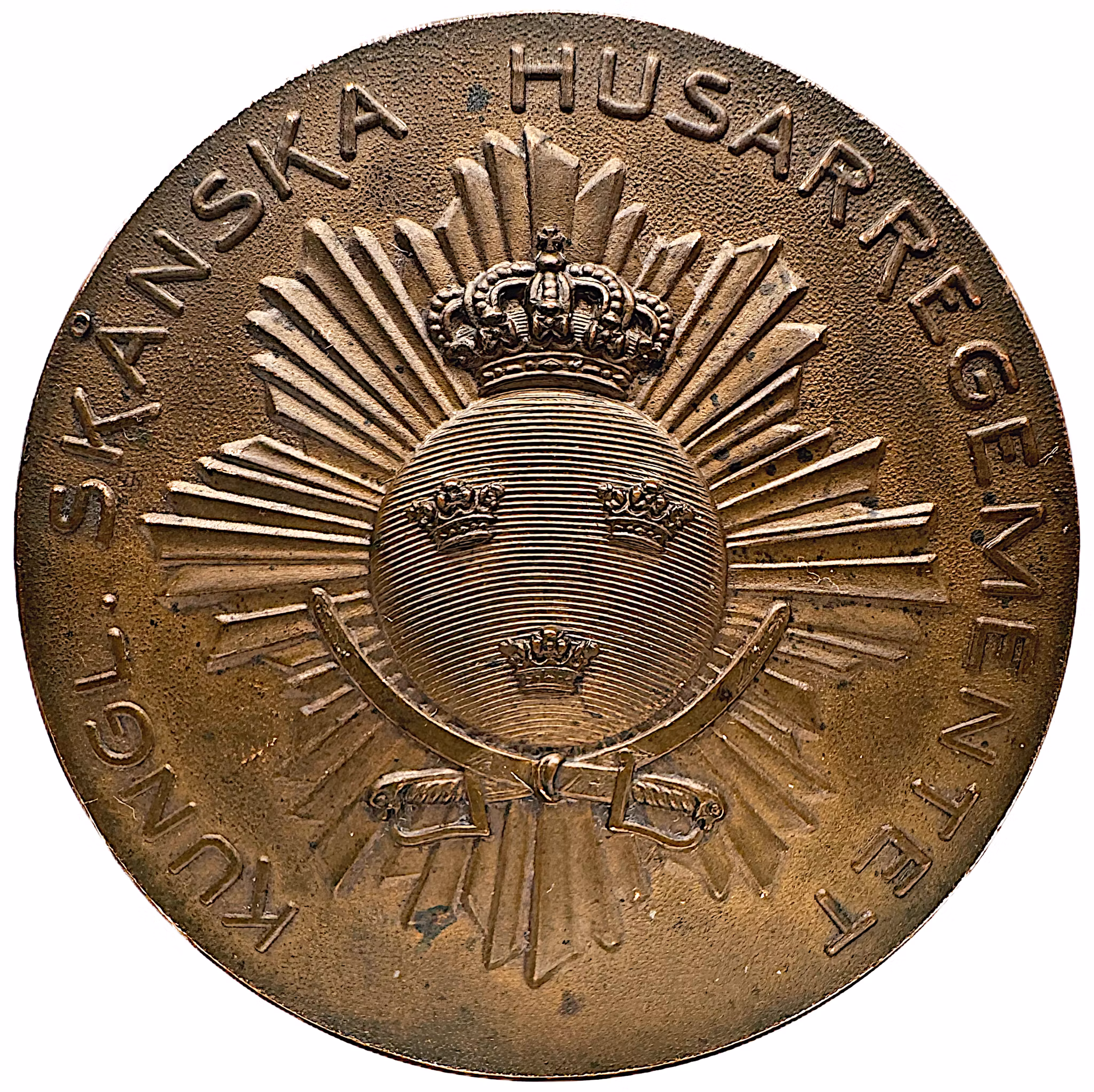 Regementet var länge förlagt till Helsingborg och senare Ljungbyhed och var känt under beteckningen K5. Trots sin ärorika historia lades regementet ner i samband med försvarsbeslutet 1925, och avvecklades formellt 1927. Denna medalj, präglad tre decennier efter nedläggningen, är därför en minnespenning utgiven för att hedra och bevara minnet av det anrika regementet och dess 300-åriga historia.