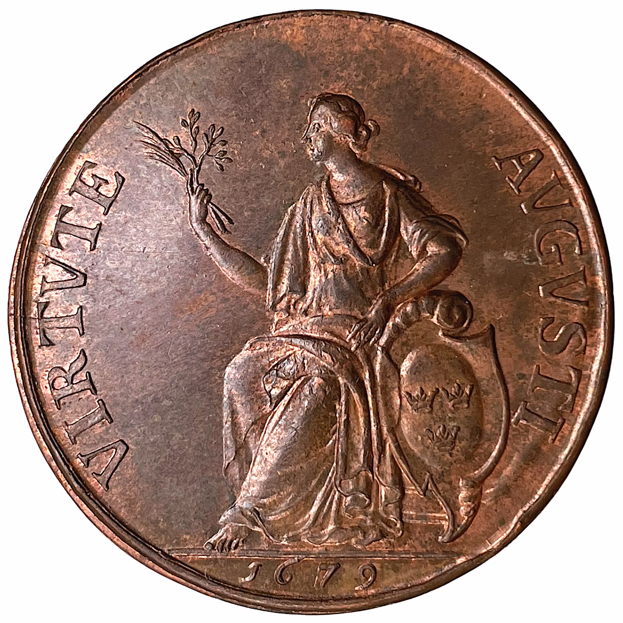 Karl XI 1679 - Sveriges ära och lycka återställd ett underbart toppexemplar i helt röd färg av Arvid Karlsteen