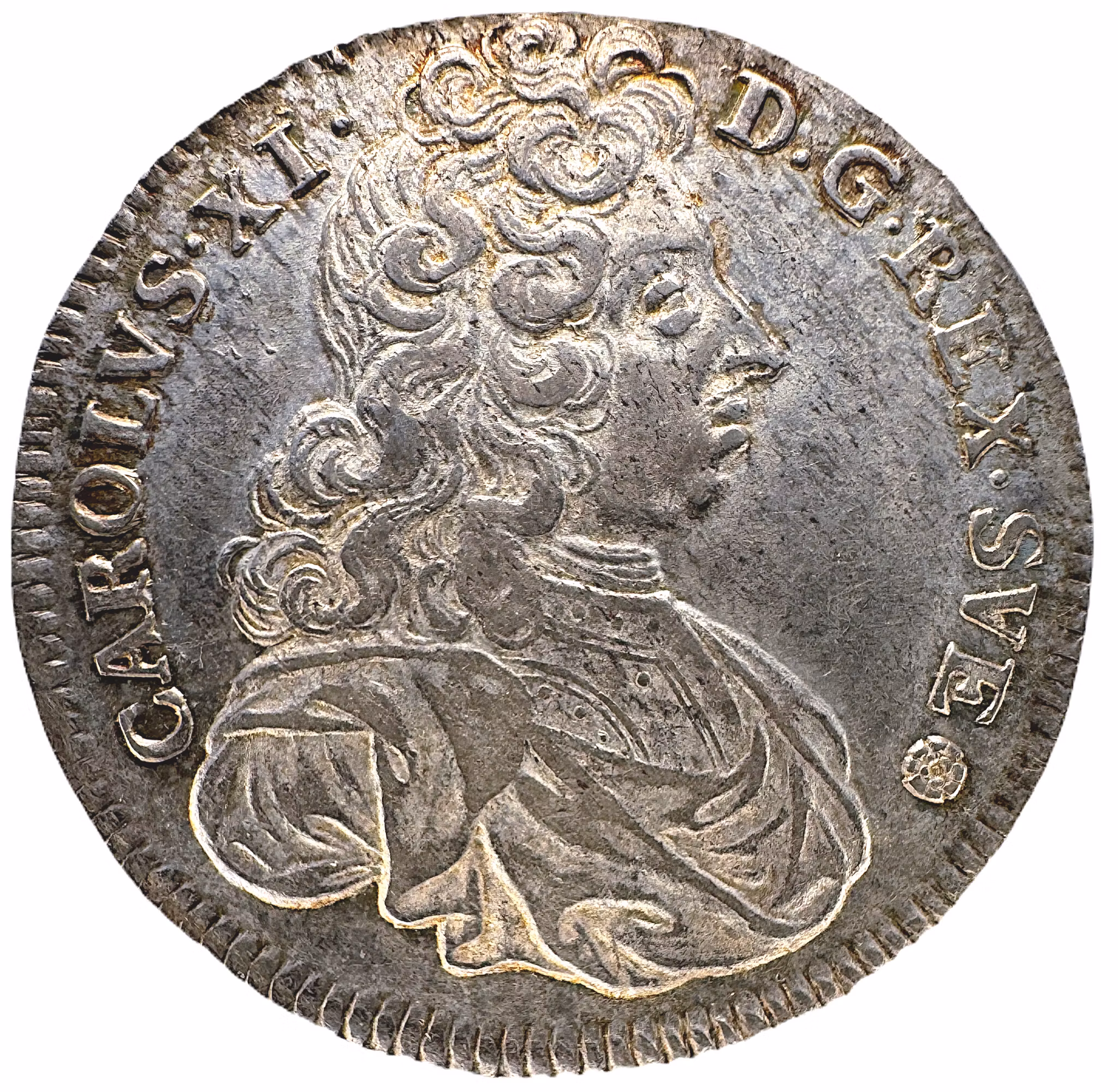 Karl XI, 4 Mark 1693 - Ett synnerligen vackert exemplar med mycket lyster 0 kr 9 500 kr Karl XI, 4 Mark 1693 - Ett synnerligen vackert exemplar med mycket lysterKvalitet 1+/01-01, SMB 58, 21.1g