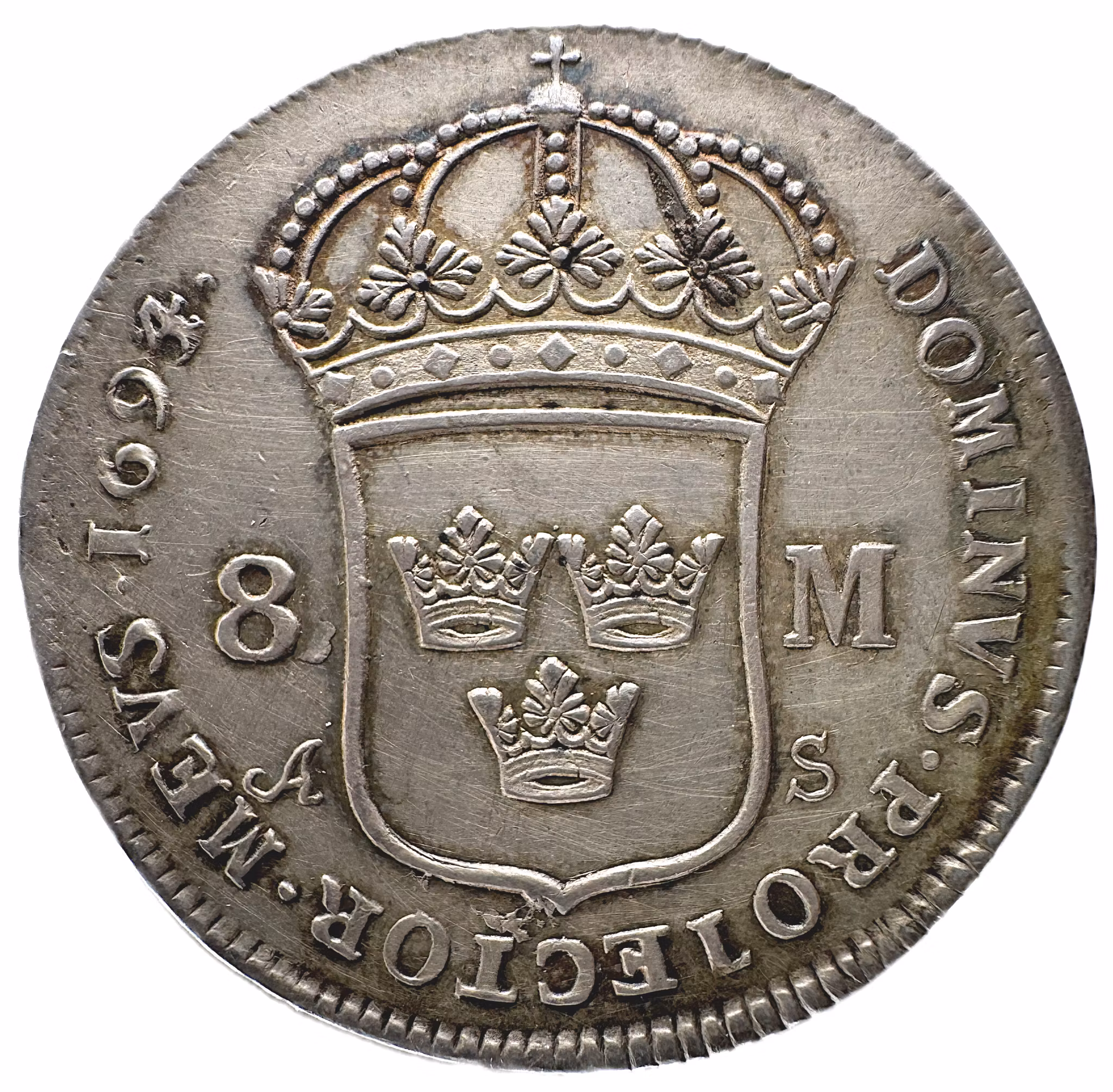 Karl XI - 8 Mark 1694 på 3 - Vackert exemplar med härlig lyster och skärpa i präglingen 0 kr 24 500 kr Karl XI - 8 Mark 1694 på 3 - Vackert exemplar med härlig lyster och skärpa i präglingenKvalitet 1+/01++, SMB 26
