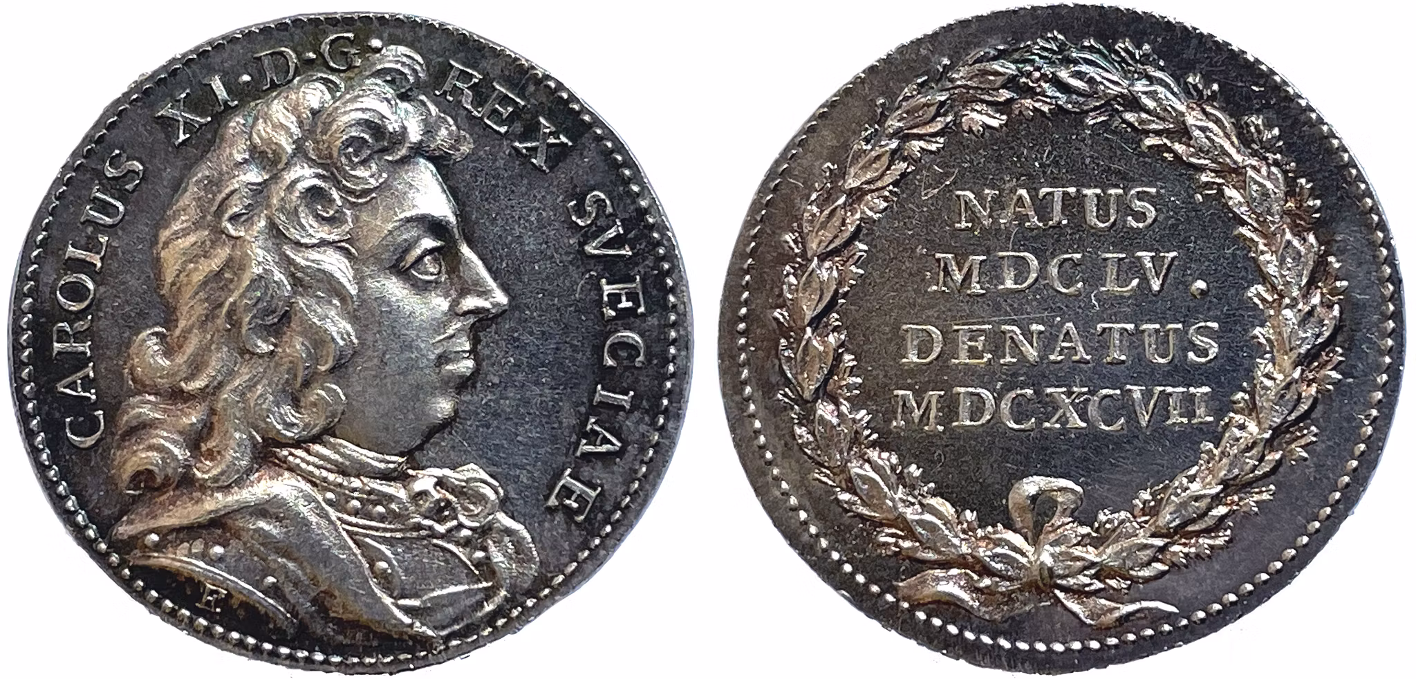 Karl XI - Konungens minne av Carl Enhörning - Praktexemplar med frostad relief och djupt glänsande fält