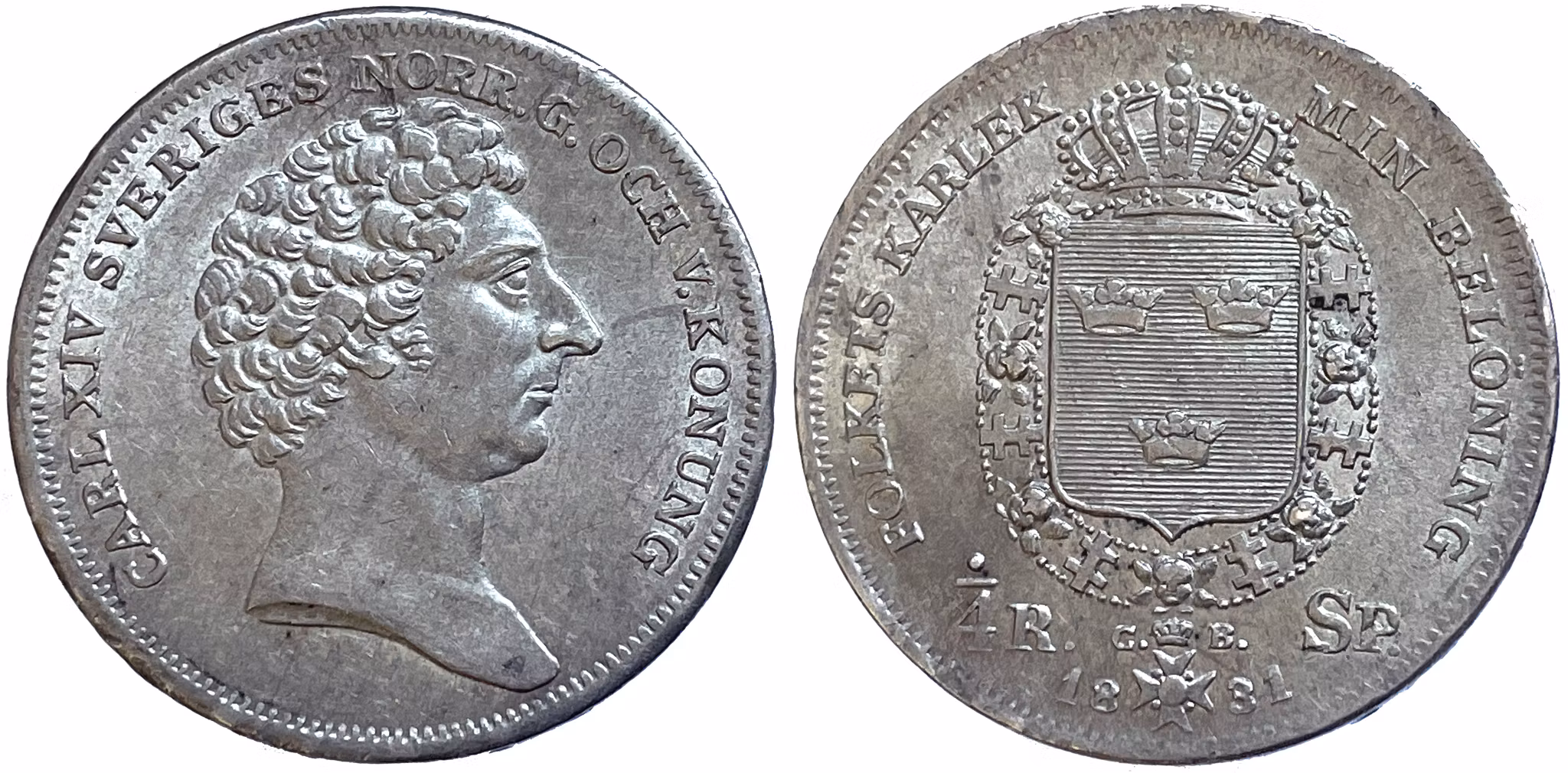 Karl XIV Johan, 1/4 Riksdaler Specie 1831