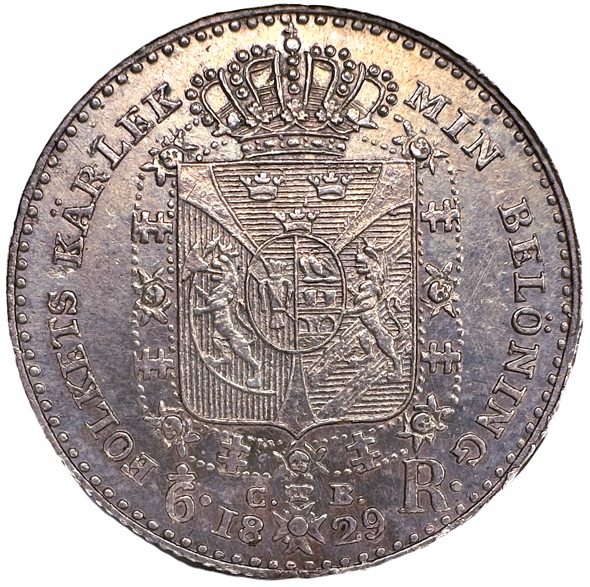 Karl XIV Johan - 1/6 Riksdaler 1829 - Tilltalande exemplar Produkten är tyvärr slut i lager. :( Karl XIV Johan - 1/6 Riksdaler 1829 - Tilltalande exemplarKvalitet 1+/01++, SMB 32