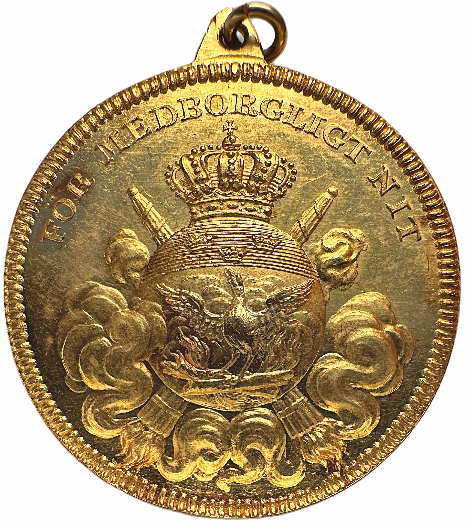 Karl XIV Johan - Allmänna Brandförsäkringsverket 1820 - Belöningsmedalj i guld "FÖR MEDBORGERLIGT NIT"- Extremt sällsynt