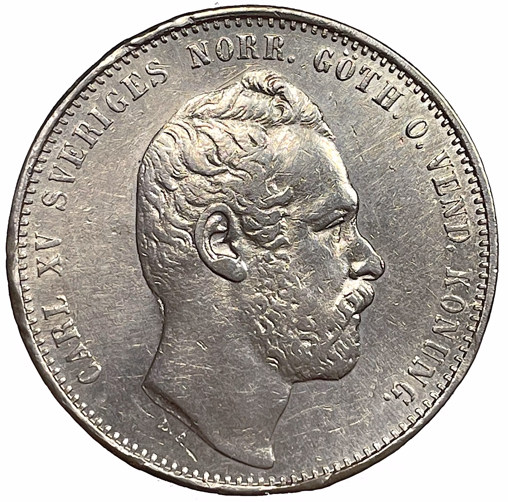 Karl XV, 1 Riksdaler Riksmynt 1864 0 kr 3 500 kr Karl XV, 1 Riksdaler Riksmynt 1864Kvalitet god 1+, något oroliga kanter, SMB22