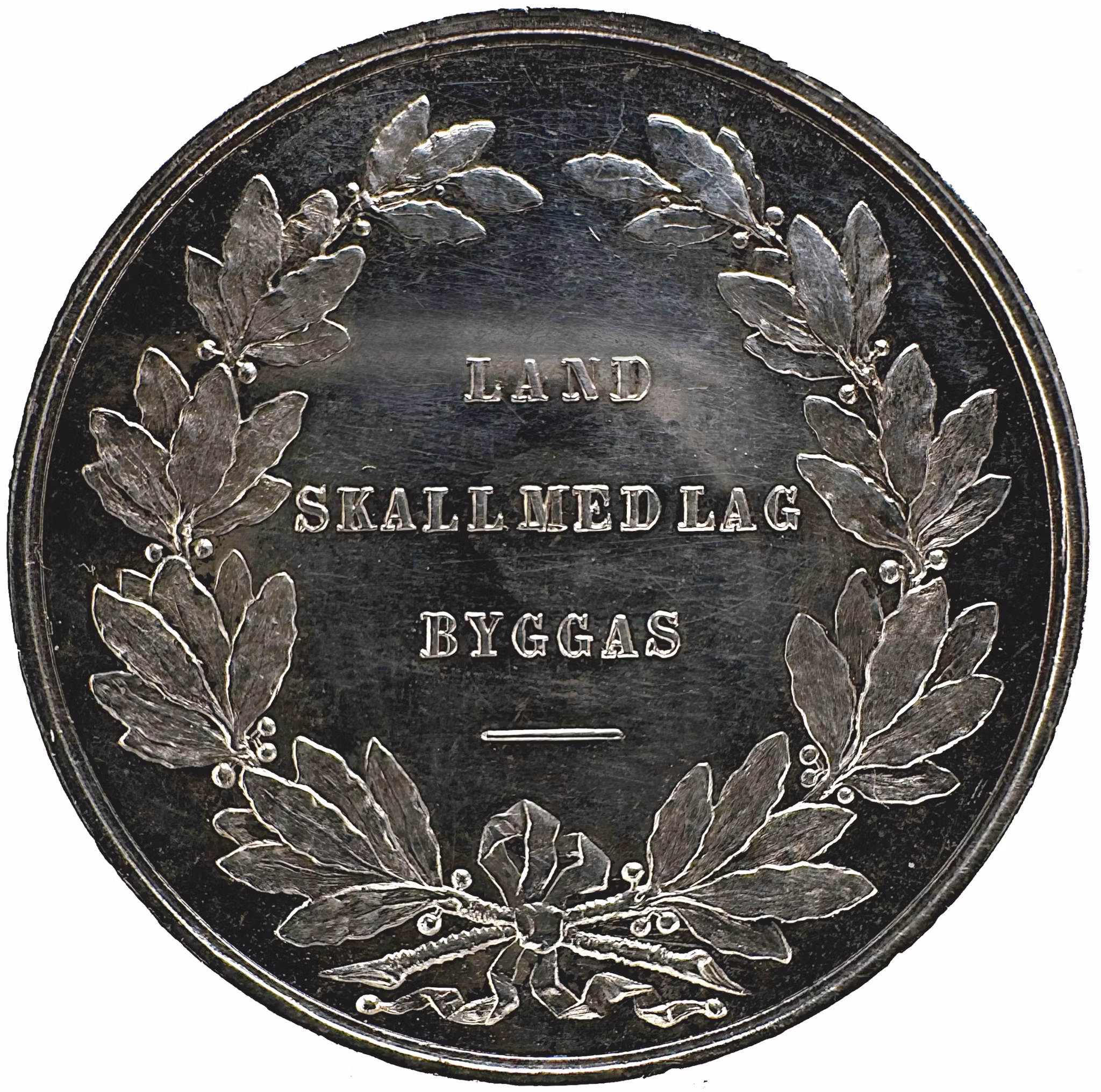 Silver, 12.75g, 31mm. Graverad av Lea Ahlborn (Sveriges första kvinnliga mynt- och medaljgravör), kvalitet 1+/01+, SMB 49b