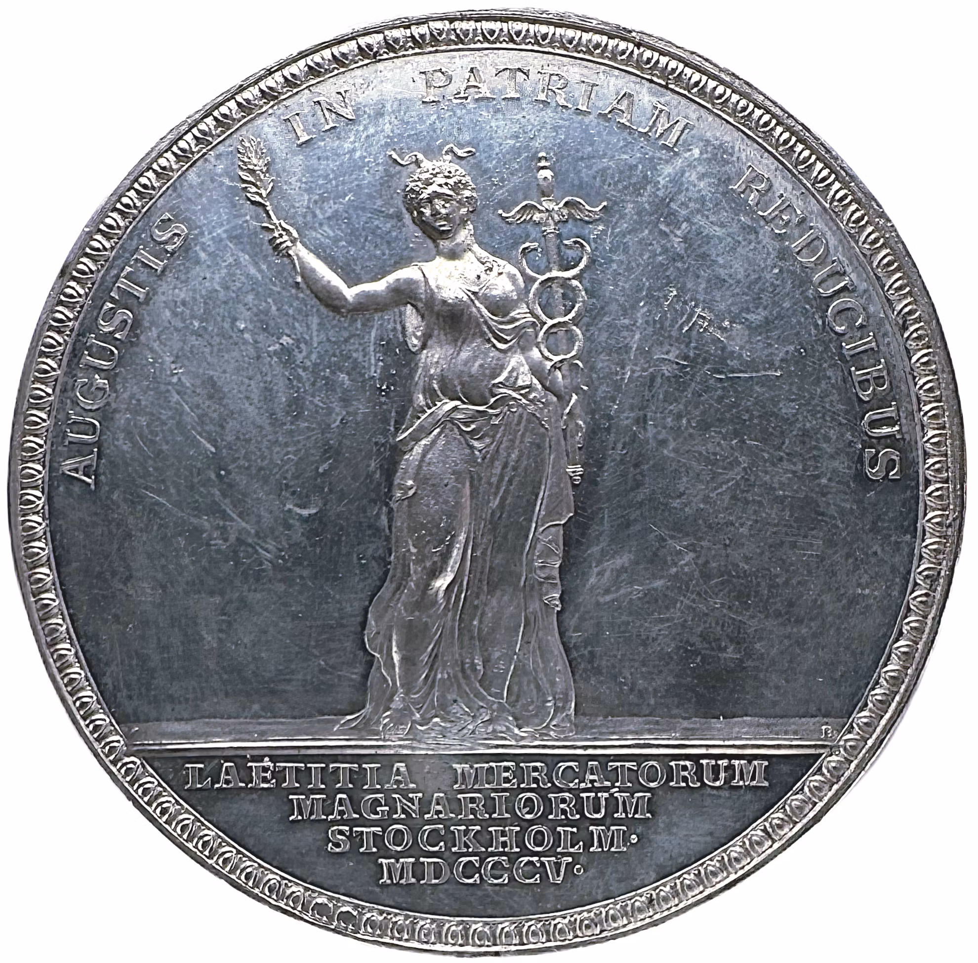 Medaljen från 1805 är en ögonblicksbild av ett Sverige som står på randen till en av sina största nationella katastrofer. Stockholms köpmän firade kungaparets säkra återkomst och hoppades på fred och blomstrande handel. Kungen själv återvände, inte med fred, utan med en fast beslutsamhet att kasta in Sverige i kriget mot Napoleon.