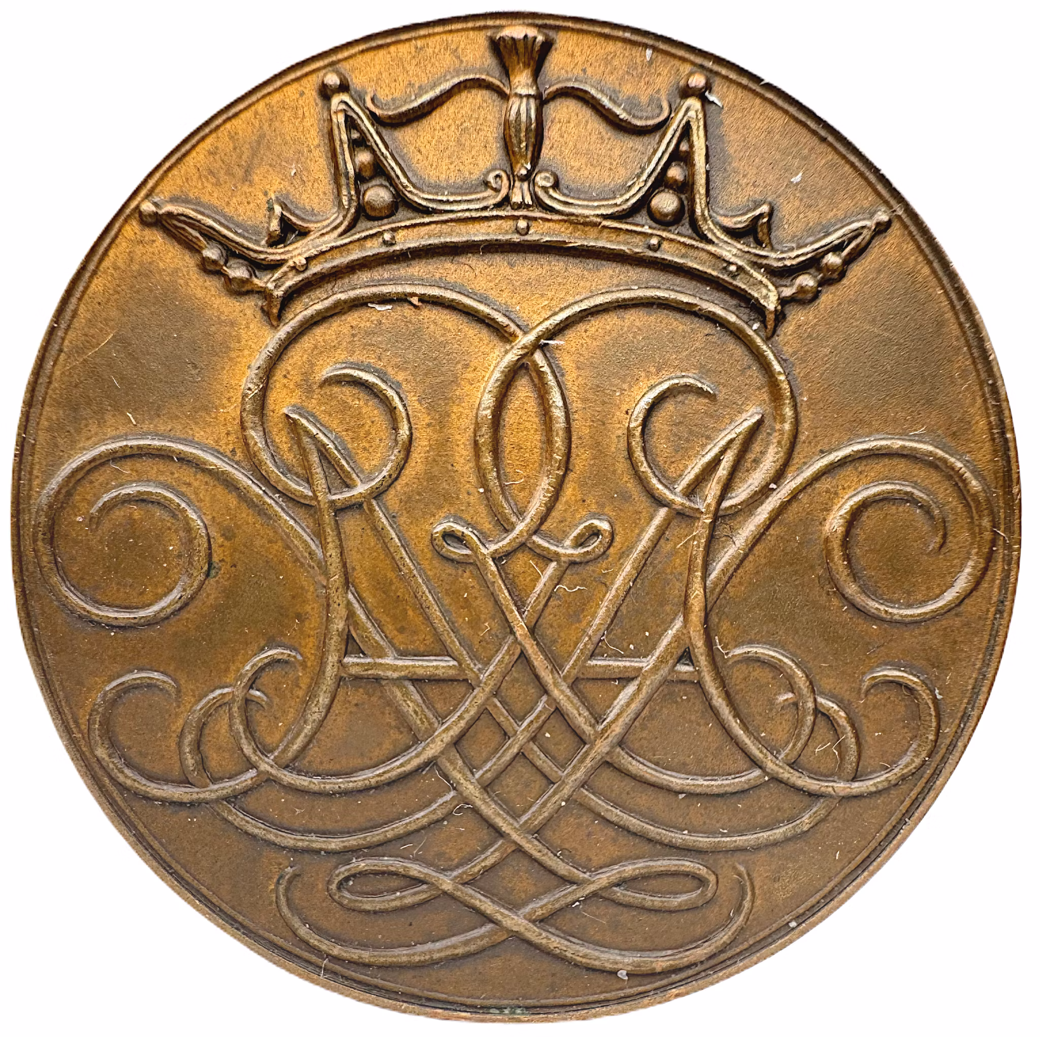 Den 10.1 skriver Erik Lindberg vidare i dagboken: "Kronprinsparets besök på Myntet har i dag ägt rum och av löpte på trevligt sätt. De anslogo två timmar däråt och fingo se de flesta avdelningarna. Till sist kommo de in »i torftiga hålan min». Jag hade monterat upp en modell i reduktionsmaskinen, som naturligtvis roade dem, ej minst prins Carl Johan som också var med. Likaså fick jag demonstrera gången i övrigt av en medaljstamps tillkomst. Minnesslanten blev förstås enkel - den korta tiden tillät ej annat - ett namnskiffer GAL på ena sidan, inskrift på den andra"